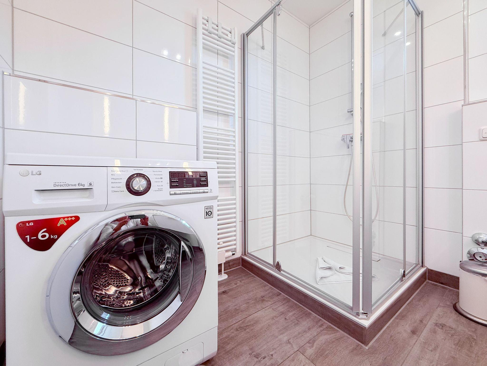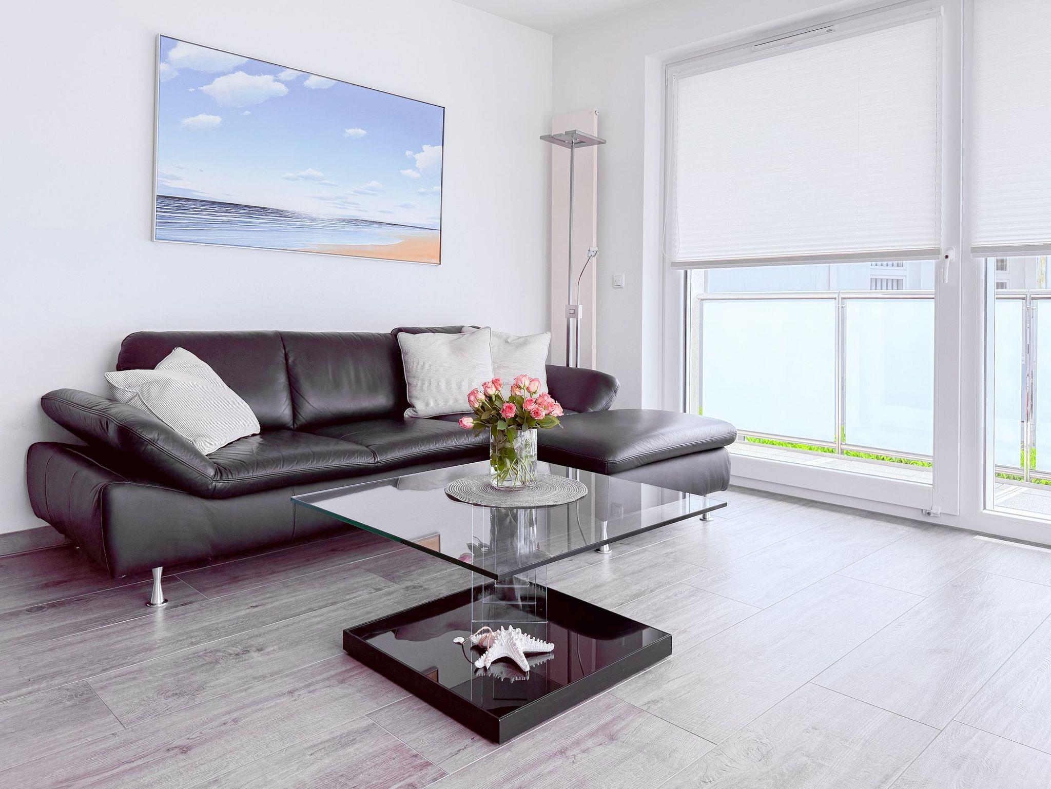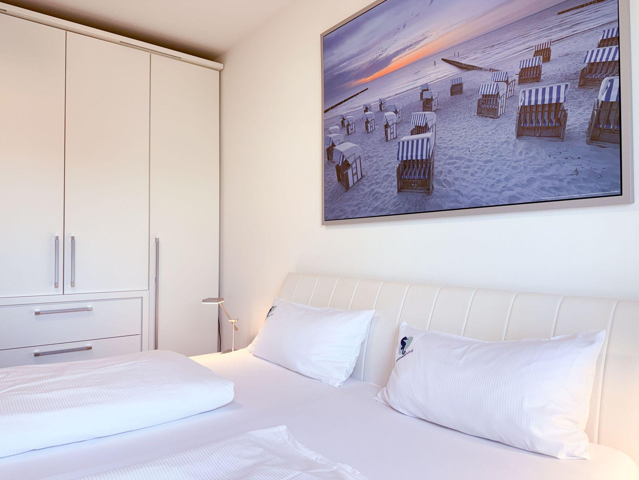 Die luxuriöse Ferienwohnung bietet mit 2 separaten Schlafzimmern ausreichend Platz für 4 Personen, um einen schönen Urlaub zu verleben. Es stehen ein Doppelbett (180x200) und zwei Einzelbetten (80x200) zur Verfügung. Beide Schlafzimmer sind mit einem TV ausgestattet. Bei der Einrichtung und Ausstattung der Immobilie wurde nicht gespart und sehr viel Wert auf hochwertige Materialien gelegt. 3 TV, Hifi-Anlage, Bose Bluetooth Anlage, kostenloser Internetzugang über WLAN, Fußbodenheizung, elektrische Außenjalousien, modernes Duschbad mit viel Tageslicht und integrierter Waschmaschine. Die hochwertige, moderne Einbauküche mit angrenzendem Essbereich ist bestens mit allen technischen Geräten ausgestattet und genügt höchsten Ansprüchen. Sehr charmant ist der Blick ins Grüne durch das große Bullauge. Übergroße Fensterelemente sorgen für einen lichtdurchfluteten Wohnbereich mit Blick zur ruhigen Gartenseite und auf den großzügig angelegten Südwestbalkon mit Dachterrassen Charakter, selbstverständlich komfortabel möbliert mit Sitzgruppe, Sonnenliegen und elektrischer Außenmarkise.