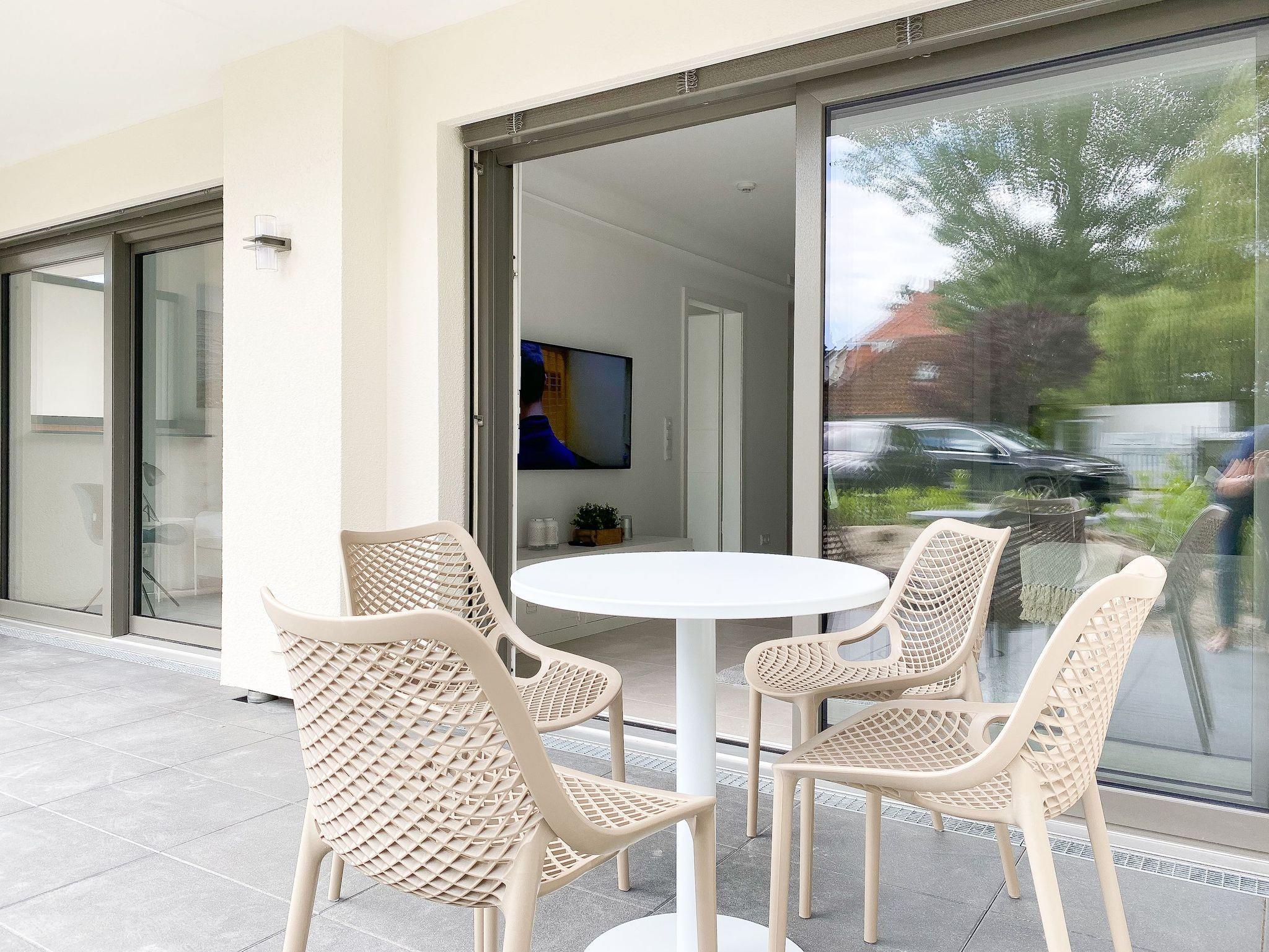 Die Ferienwohnung Wohnen am Strand 2 befindet sich im Erdgeschoss und bietet mit einem Schlafzimmer, ausgestattet mit einem Boxspringbett (180x200 )[nbsp][nbsp]und TV sowie einem bequemen Schlafsofa im Wohnbereich (140x185), [nbsp]jeglichen Komfort für 3 bis 4 [nbsp]Personen, um einen entspannten Urlaub zu verleben. Der hochwertig eingerichtete Wohn- Essbereich lässt keine Wünsche offen. Entspannen Sie auf Ihrer überdachten Terrasse, die sich über die gesamte Breite der Wohnung erstreckt, Brandungsrauschen und frische Ostseeluft inklusive. Es stehen insgesamt 2 TV, Radio und WLAN zur Verfügung. Die Wohnung ist mit Fußbodenheizung ausgestattet und alle Fenster sind mit elektrischen Außenjalousien versehen, die gleichermaßen für Verdunkelung oder Tageslicht mit Privatsphäre sorgen. Zur Wohnung gehört ein fester PKW Außenstellplatz. Das Haus verfügt über einen Fahrstuhl und einen Fahrradkeller. Waschmaschine und Trockner stehen kostenlos zur gemeinschaftlichen Nutzung[nbsp] zur Verfügung.