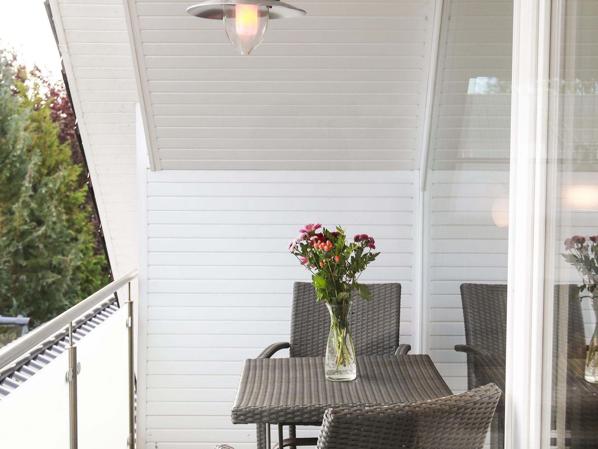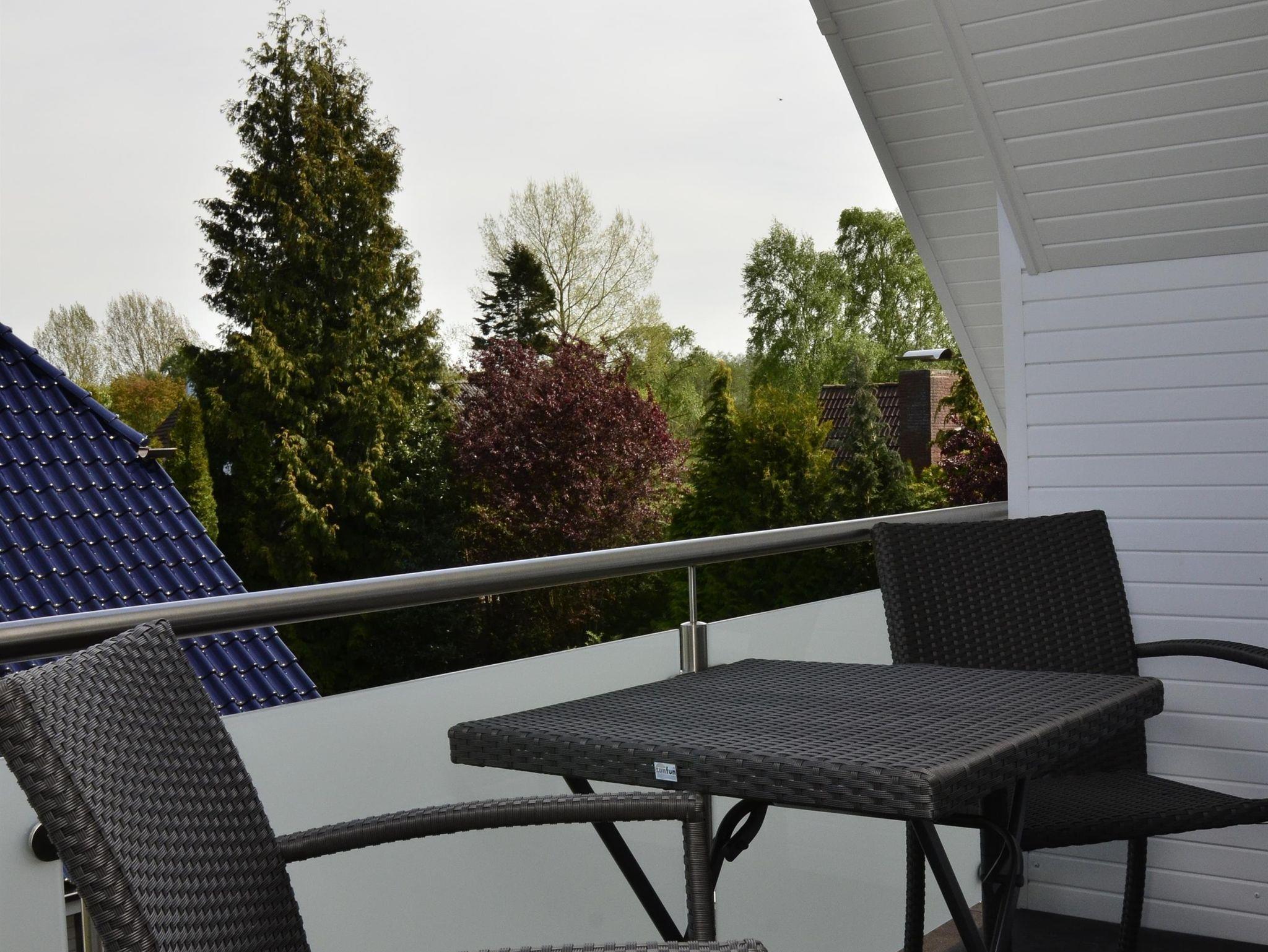 Zusätzlich besitzt diese Ferienwohnung einen überdachten Balkon, der mit Stühlen und Tisch ausgerüstet ist.