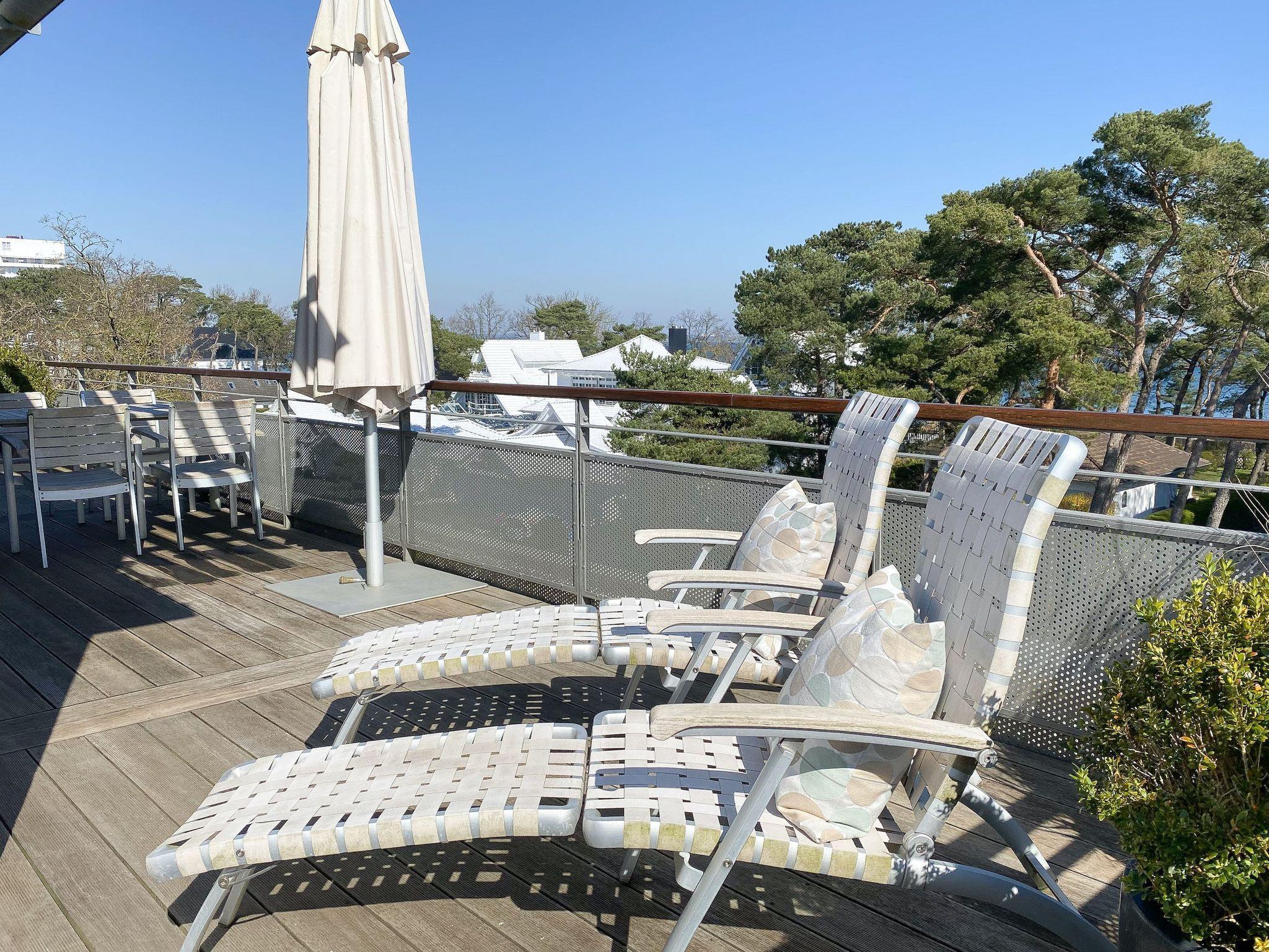 Das Penthouse mit Meerblick befindet sich in erstklassiger Lage von Timmendorfer Strand nur wenige Meter von der Ostsee und dem Strand entfernt. Die umlaufende Dachterrasse, ausgestattet mit Gartenmöbeln und Sonnenliegen, ist von jedem Raum zu betreten und lädt zu jeder Tageszeit zum Verweilen ein. Große, bodentiefe Fenster sorgen für eine helle und freundliche Atmosphäre und ermöglichen einen wunderschönen Ausblick auf die Ostsee.