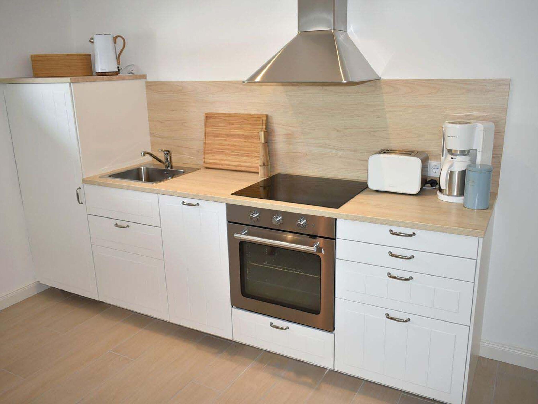 Wohnzimmer: 4 Plattenherd mit Backofen und Ceranfeld, 4 Stühle, Alexa, Beistelltisch, Couch, Couchtisch, Dunstabzugshaube, Einbauküche, Esstisch, Flachbildschirm, Geschirr, Handmixer, Kaffeemaschine, Kochtöpfe, Kühlschrank mit 3* Gefrierfach, Saftpresse, Sat-TV, Schrank, Sessel, Spülmaschine, Stehlampe, Stressless Sessel, Toaster, Wasserkocher