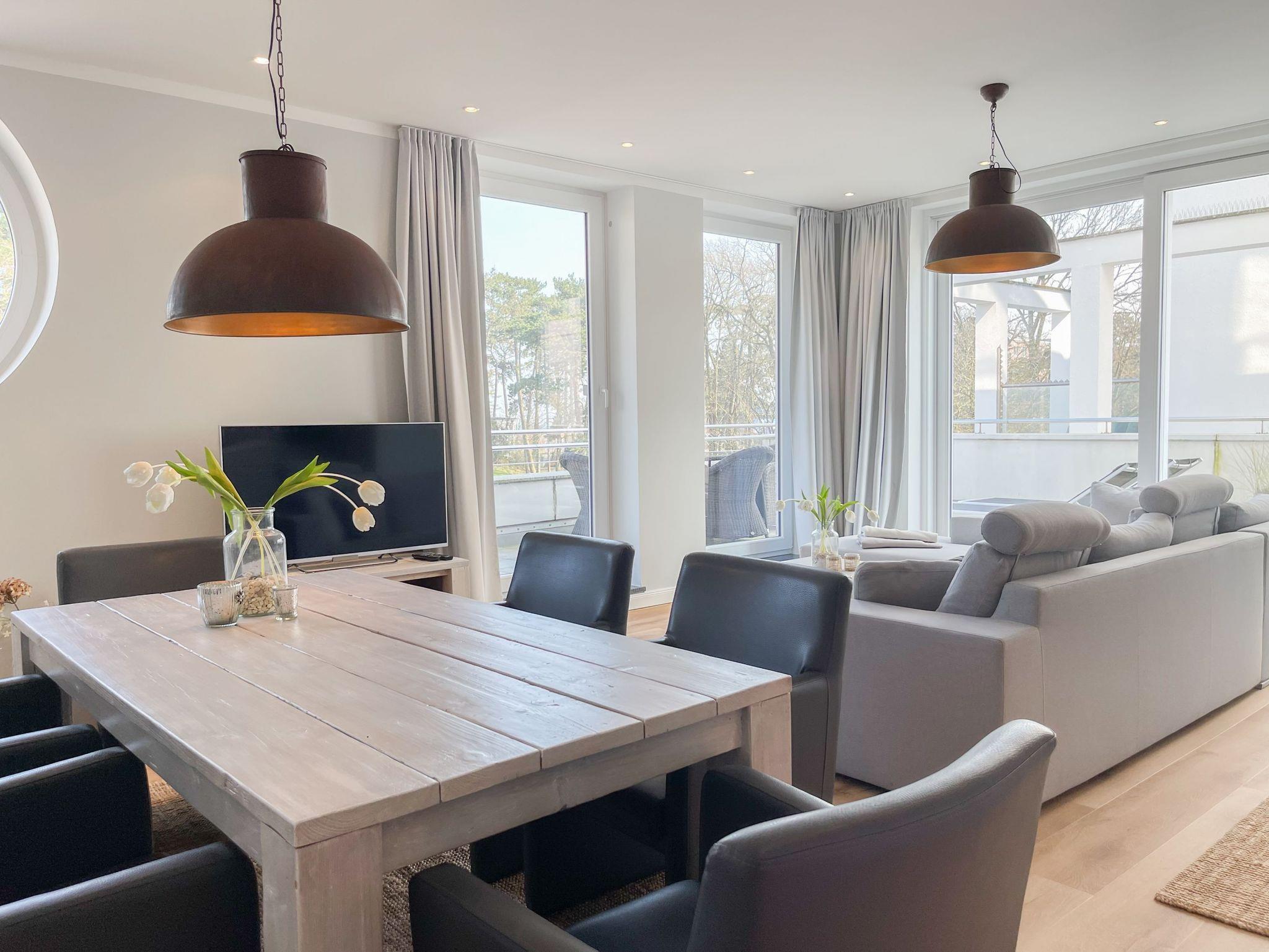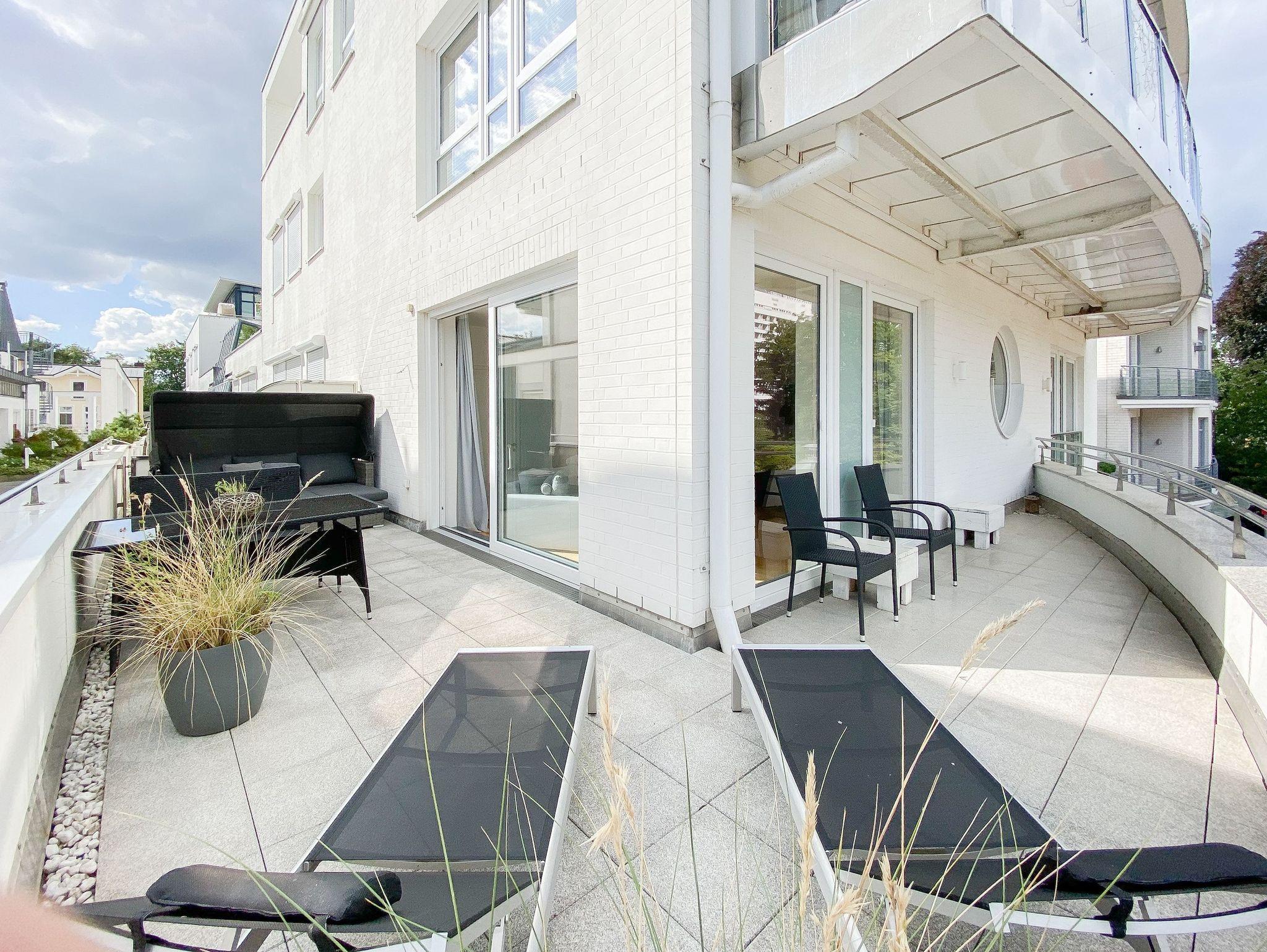 Die Ferienwohnung Beach Pearl #1 befindet sich in der ersten Etage und bietet auf fast 90 qm viel Raum für 2 Personen, um einen entspannten Urlaub zu verleben. Große, bodentiefe Fensterflächen sorgen für reichlich Tageslicht und herrliche Ausblicke. Besonders hervorzuheben ist der riesige, umlaufende Balkon in Südostausrichtung, der teilweise überdacht und bestens möbliert ist. Im großzügigen Wohnraum erwartet Sie ein gemütliches XXL Ecksofa, TV, WLAN und ein Essbereich, der ausreichend Platz für 6 Personen bietet. Die integrierte Wohnküche verfügt über eine Spülmaschine, Backofen, Ceranfeld und einen großen Kühlschrank. Das separate Schlafzimmer ist mit einem Doppelbett (180x200), einem Kleiderschrank mit reichlich Stauraum für Ihre Urlaubsgarderobe, TV und Verdunkelungsvorhängen ausgestattet. Das Bad ensuite verfügt über einen Doppelwaschtisch, Radio, Dusche und eine integrierte Waschmaschine. Ein separates Gäste WC ist ebenfalls vorhanden. Zur Ferienwohnung gehört eine fester Tiefgaragen Stellplatz und das Haus verfügt selbstverständlich über einen Aufzug. Fahrradunterstellmöglichkeit vorhanden.