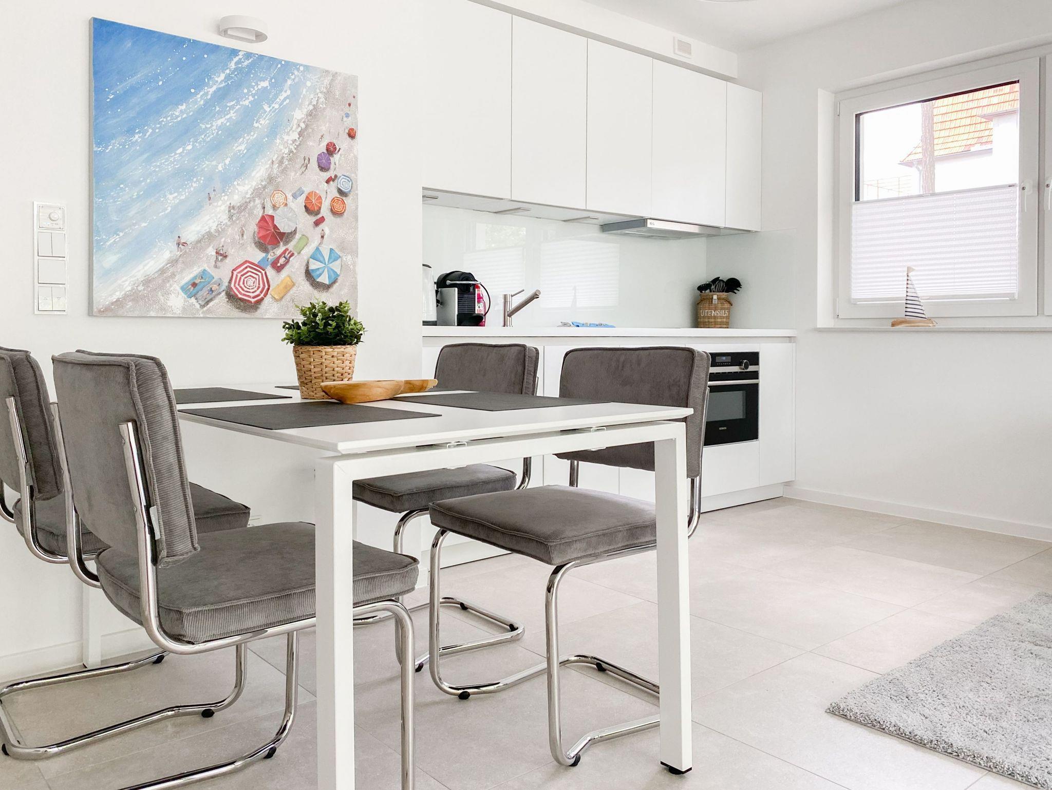 Die Ferienwohnung Wohnen am Strand 3 befindet sich im Erdgeschoss und bietet mit 2 Schlafzimmern, ausgestattet mit Boxspringbetten (180x200 und 160x200)[nbsp][nbsp]und TV sowie 2 Duschbädern, [nbsp]jeglichen Komfort für 4 Personen, um einen entspannten Urlaub zu verleben. Der hochwertig eingerichtete Wohn- Essbereich bietet einen schönen Ausblick auf den maritim angelegten Garten. Entspannen Sie auf Ihrer überdachten Terrasse, Brandungsrauschen und frische Ostseeluft inklusive. Es stehen insgesamt 3 TV,[nbsp] Radio und WLAN zur Verfügung. Die Wohnung ist mit Fußbodenheizung ausgestattet und alle Fenster sind mit elektrischen Außenjalousien versehen, die gleichermaßen für Verdunkelung oder Tageslicht mit Privatsphäre sorgen. Zur Wohnung 3 gehört ein fester PKW- Außenstellplatz. Das Haus verfügt über einen Fahrstuhl und einen Fahrradkeller. Waschmaschine und Trockner stehen kostenlos zur gemeinschaftlichen Nutzung[nbsp] zur Verfügung.
