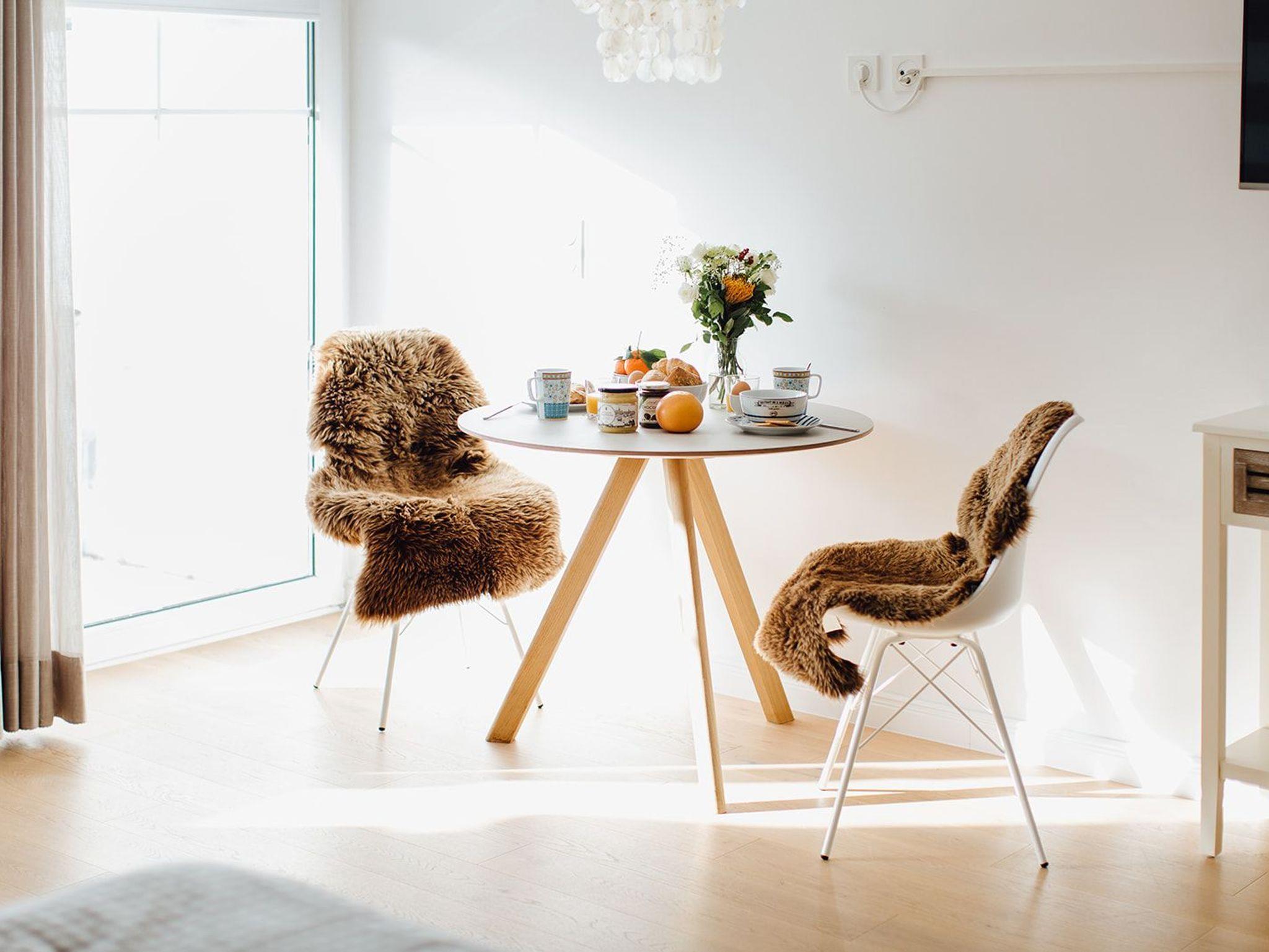 Bodentiefe Fensterelemente, Echtholzparkett und die geschmackvolle Einrichtung mit Liebe zum Detail, schaffen eine helle und freundliche Atmosphäre zu Wohlfühlen. Die 42 qm wurden optimal genutzt und bieten ein schönes Ambiente für 2 Personen. Es erwartet Sie ein großzügiger Wohn-/Schlafbereich mit einem Doppelbett (180x200), einem gemütlichen Sofa, TV und einem Essbereich für 2 Personen. Eine schöne, teilweise überdachte Terrasse in Südausrichtung, lädt zu jeder Tageszeit zum Entspannen ein. Die Fenster sind mit Verdunkelungsvorhängen versehen. Die moderne[nbsp] Küchenzeile ist im Flurbereich integriert. Das hochwertige Bad verfügt über eine[nbsp] Dusche, Waschtisch, WC und Handtuchwärmer. Kostenloser Internetzugang über WLAN steht selbstverständlich zur Verfügung.