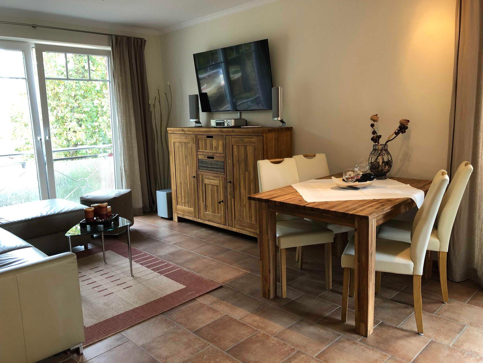 Die Wohnung befindet sich im 1. Obergeschoss am Kurpark, Kurparkstr. 7,optimale Aufteilung ca. 55m². Sie ist neuwertig, voll möbliert und mit allem Komfort wie 2 Fernseher mit Musiksender usw. versehen. Wohn- und Essbereich mit großem Schlafsofa, mit Ausgang auf den möblierten Balkon, Schlafzimmer mit Balkon Blick Kurpark, Flur, Vollbad Badewanne u. Dusche, Einbauküche (Geschirrspüler, Backofen, Ceranfeld, Gefrierfach, Mikrowelle usw.) Fußbodenfliesen, sehr moderne Einrichtung, TV-Überwachung, Kabel-TV, Wlan, Aufzug, Sauna-Wellness, Waschmaschine, Trockner. Unsere Preise variieren, je nach Saison, zzgl. Endreinigung, zubuchbar Wäschepaket Parkplatz gratis. Diese Ferienwohnung ist für 1 -4Personen.