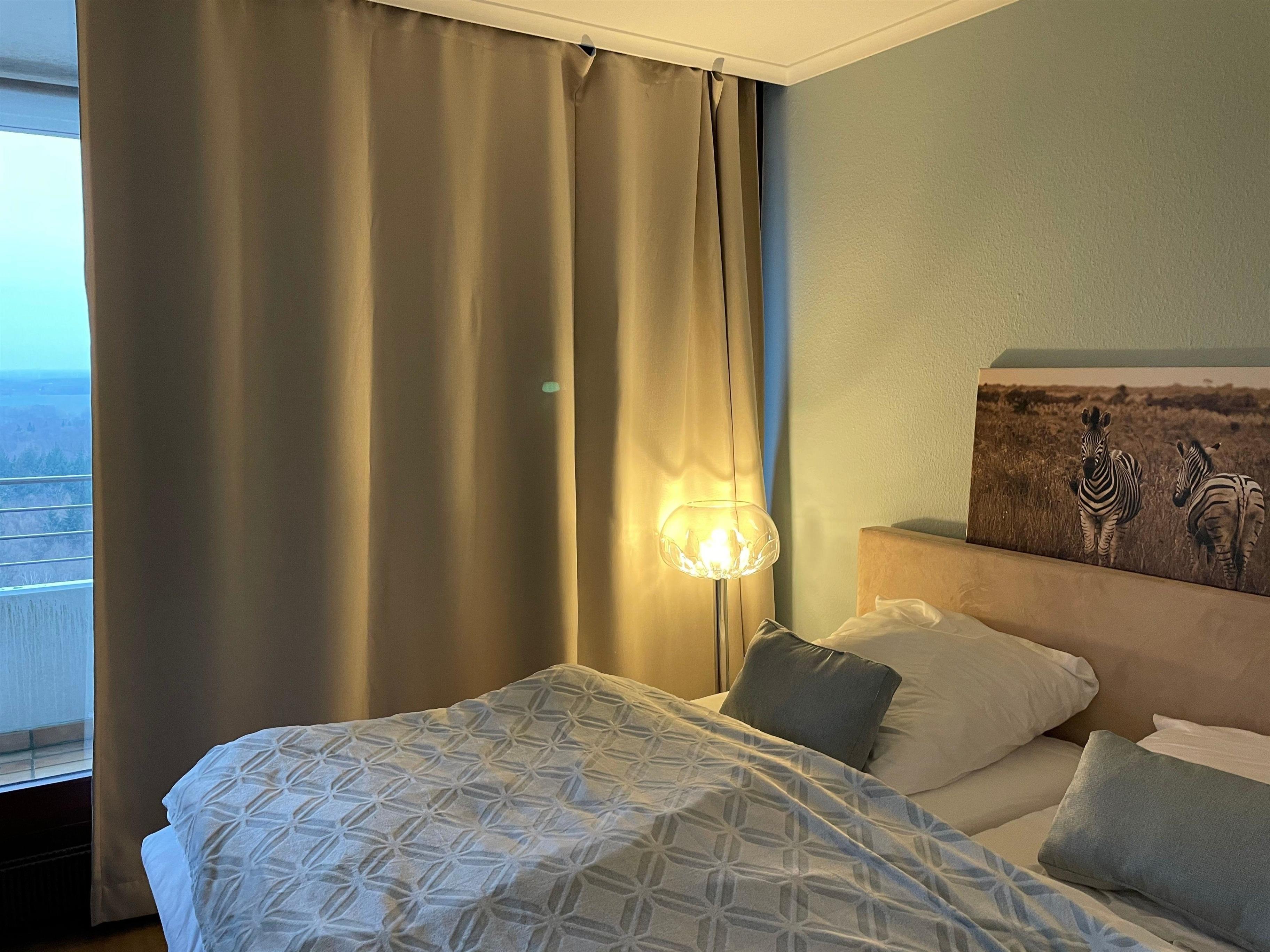 Die Wohnung besteht aus 2 Zimmern. Im großen Wohnzimmer ist eine Schlafnische mit Ausziehcouch (1,40m breit) sowie die Einbauküche mit Geschirrspüler, Waschtrockner, Kühlschrank, Herd und Backofen untergebracht. Das Schlafzimmer verfügt über ein großes Boxspringbett (1,80x2,00m) und ausreichend Staumöglichkeiten in den großen Schränken.