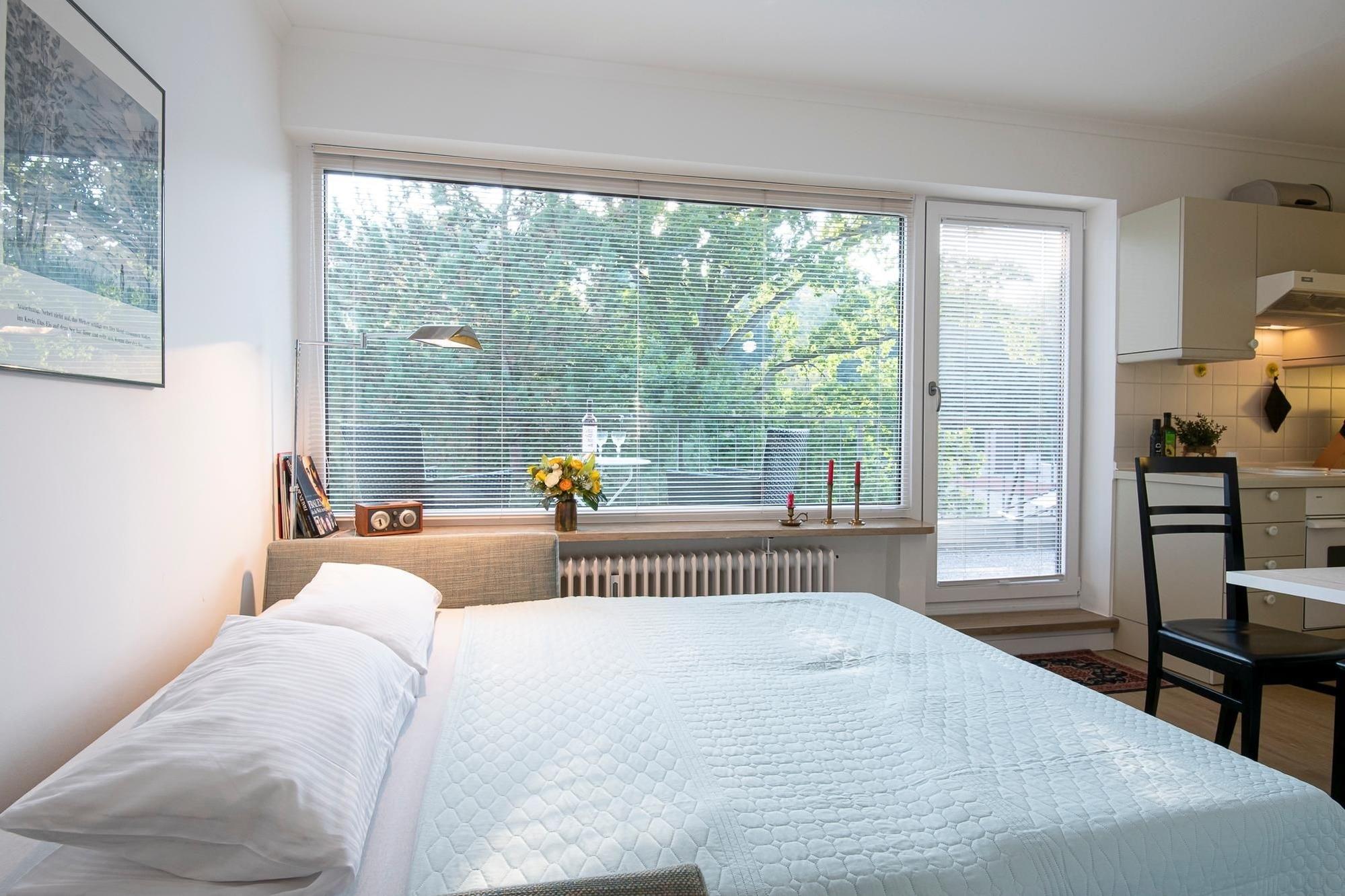 Das kleine, gemütliche Appartement begrüßt Sie mit einem offenen Wohn-/Schlaf- und Kochbereich. Auf dem behaglichen Sofa können Sie tagsüber kuscheln und fernsehen und zur Nacht verwandeln Sie es in einen komfortablen Schlafplatz (Liegefläche 160x200 cm). Die in den Raum integrierte Küche ist gut ausgestattet und Sie können mühelos schmackhafte Mahlzeiten zubereiten. Über den kostenlosen WLAN-Anschluss können Sie Ihre Lieblingsmusik streamen. An der frischen Ostseeluft wartet auf Sie ein echtes Sonnenplätzchen - der großzügige, möblierte Balkon wird Ihnen viele unvergessliche Urlaubsstunden bescheren. Eine Markise spendet bei Bedarf Schatten, wenn Sie auf der Sonnenliege in einem guten Buch schmökern. Das neuwertige Badezimmer mit Dusche, beheizbarem Handtuchhalter und Fön rundet die Ausstattung dieser niedlichen Ferienwohnung ab.