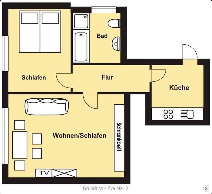 Frühmorgens fast allein am Strand spazieren gehen – das bietet Ihnen diese zauberhafte Ferienwohnung in der Wohnanlage Haus Eva Mar am Meer. Der Ostseestrand ist nur rund 20 Meter entfernt. Auch in der Ferienwohnung selbst ist die Ostsee ganz nah: Vom Wohnzimmer- und vom Schlafzimmer aus können Sie einen Blick auf die Ostsee erhaschen. Aber kommen Sie erst einmal an, packen Sie aus und machen Sie es sich im Wohnzimmer gemütlich. Ein TV-Gerät sorgt für die passende Unterhaltung. Nach einem tollen Tag am Strand steht Ihnen für die Nachtruhe im Wohnzimmer ein bequemes Schrankbett (2x 90x200 cm) zum Ausklappen zur Verfügung. Auch im separaten Schlafzimmer kann man im Doppelbett (180x200 cm) wunderbar von der Ostsee träumen. Hier befindet sich auch ein großer Kleiderschrank. Die separate Küche präsentiert sich mit heller, moderner Front und lässt die Herzen von Hobby-Köchen sicher höher schlagen. Bereiten Sie hier Ihre Urlaubsmenüs zu, eine Geschirrspülmaschine erledigt im Anschluss den Abwasch. In dem komfortablen Duschbad mit Fenster können Sie wunderbar in den neuen Urlaubstag starten.
