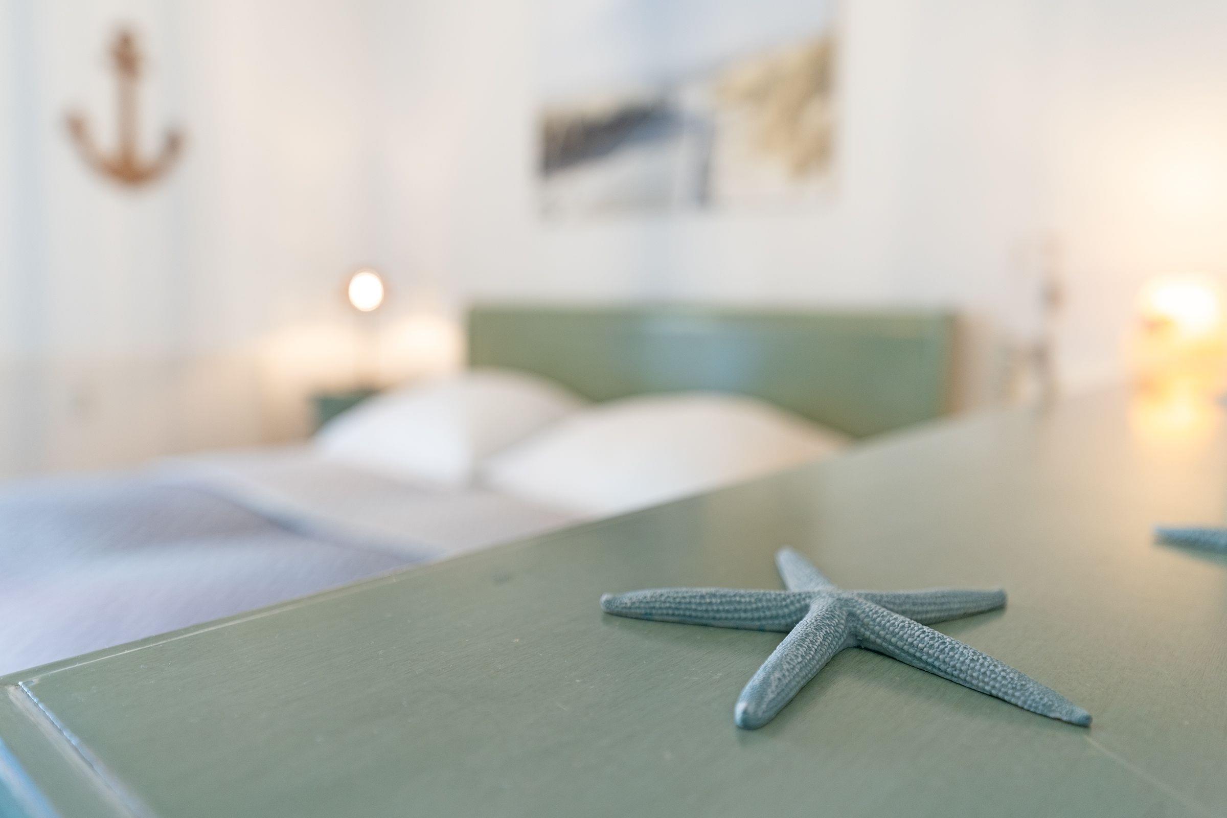 Zauberhaften Urlaub verspricht die Wohnung Zaubermuschel. Treten Sie ein, der freundliche Wohnbereich punktet durch seine geschmackvoll zusammengestellte Einrichtung mit Liebe zum Detail. Zwei große Fensterfronten lassen viel Licht hinein und sorgen für eine freundliche Atmosphäre. Abends können alle Fenster durch elektronische Rollläden abgedunkelt werden. Ihr Urlaub kann sofort beginnen. Wo wird Ihr neuer Lieblingsplatz sein? Das Sofa lädt zu kuscheligen Stunden vor dem TV-Gerät samt Streamingdiensten zur Selbstanmeldung ein. Am Fenster mit wunderschönem Erker steht eine schicke Essecke, an der man auch lustige Spieleabende verbringen kann. Und die möblierte Terrasse mit Sonnenliegen und Sonnenschirm verspricht eine wunderbare Auszeit unter freiem Himmel. Die hübsche Küche ist in den Wohnraum integriert und mit vielen kleinen Hilfsmitteln wie Espressomaschine, Mikrowelle, Mixer und Eierkocher ausgestattet, die die Selbstversorgung erleichtern und den Aufenthalt verschönern. Ein kleiner Tresen fungiert als Raumteiler.