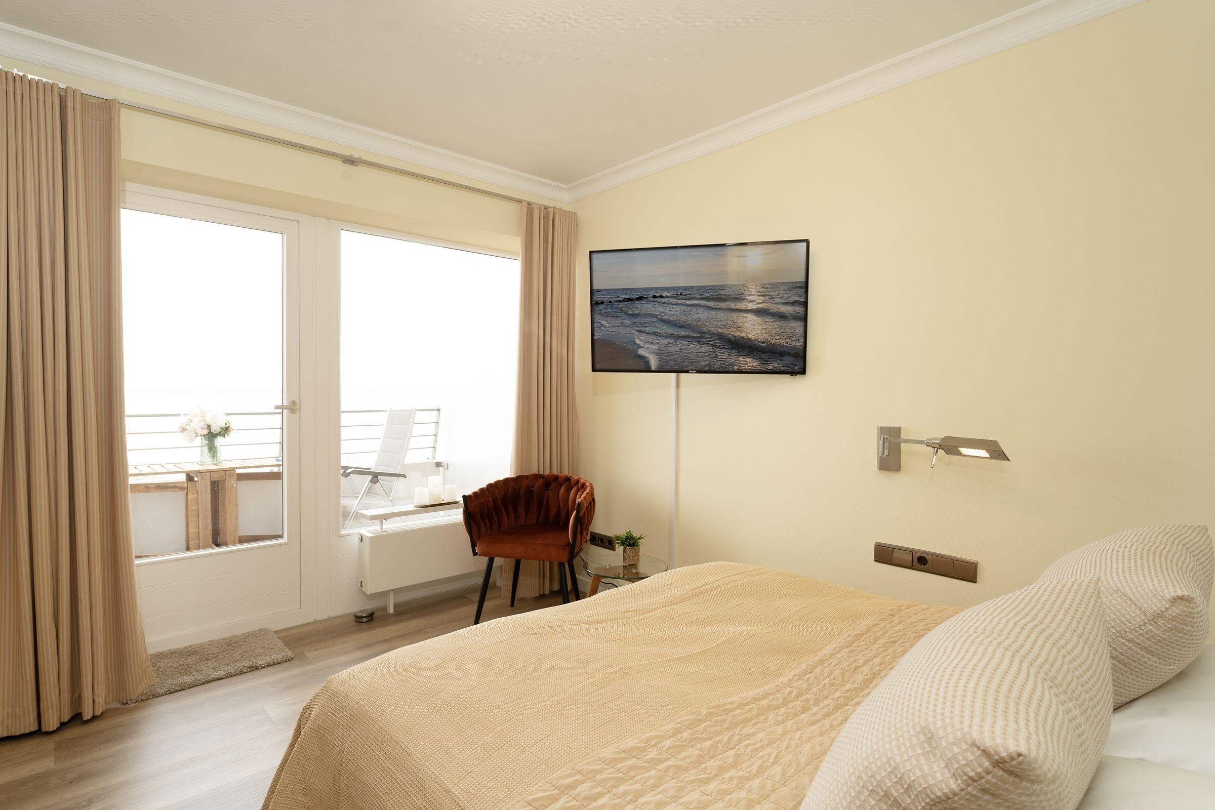 Urlaub der Extraklasse: Die Wohnung Waterfront punktet mit ihren drei Balkonen. Genießen Sie den Weitblick und die gute Seeluft! Im Wohnzimmer wartet eine große Sofalandschaft mit TV-Gerät (Netflix und RTL plus inkl.) auf Sie. Selbst vom Essplatz aus haben Sie die Ostsee im Blick, nehmen Sie auf der gemütlichen Fensterbank Platz und fangen Sie an zu träumen ... Die stylische Küche bietet viele Extras wie Induktionsherd und Spülmaschine. In den beiden Schlafzimmern befinden sich jeweils ein TV-Gerät sowie ein Doppelbett (200x200 cm bzw. 160x200 cm), zudem schenkt die Sofalandschaft 2 Schlafplätze (160x200 cm). Ein modernes Duschbad sowie ein Gäste-WC runden das Angebot ab. WLAN ist inklusive.