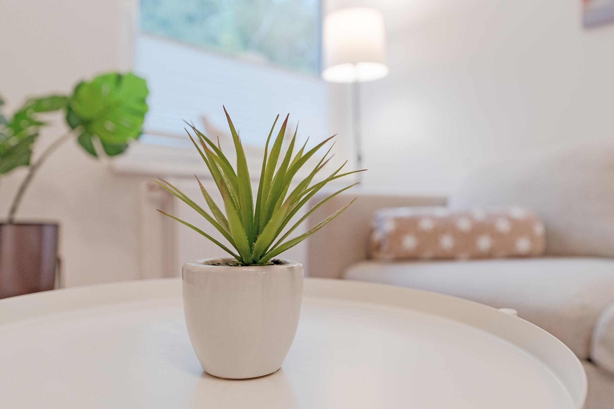 Im hellen und modernen Wohnzimmer erwartet Sie eine gemütliche Schlafcouch (140x200 cm) und Essbereich, der zum gemeinsamen Essen oder Spiele-Abenden einlädt. Ein Flachbild-TV sowie kostenfreies WLAN sorgt für weitere Unterhaltung. Lieber raus an die frische Luft? Im gepflegten Gemeinschaftsgarten können Sie zahlreiche Sonnenstunden genießen.