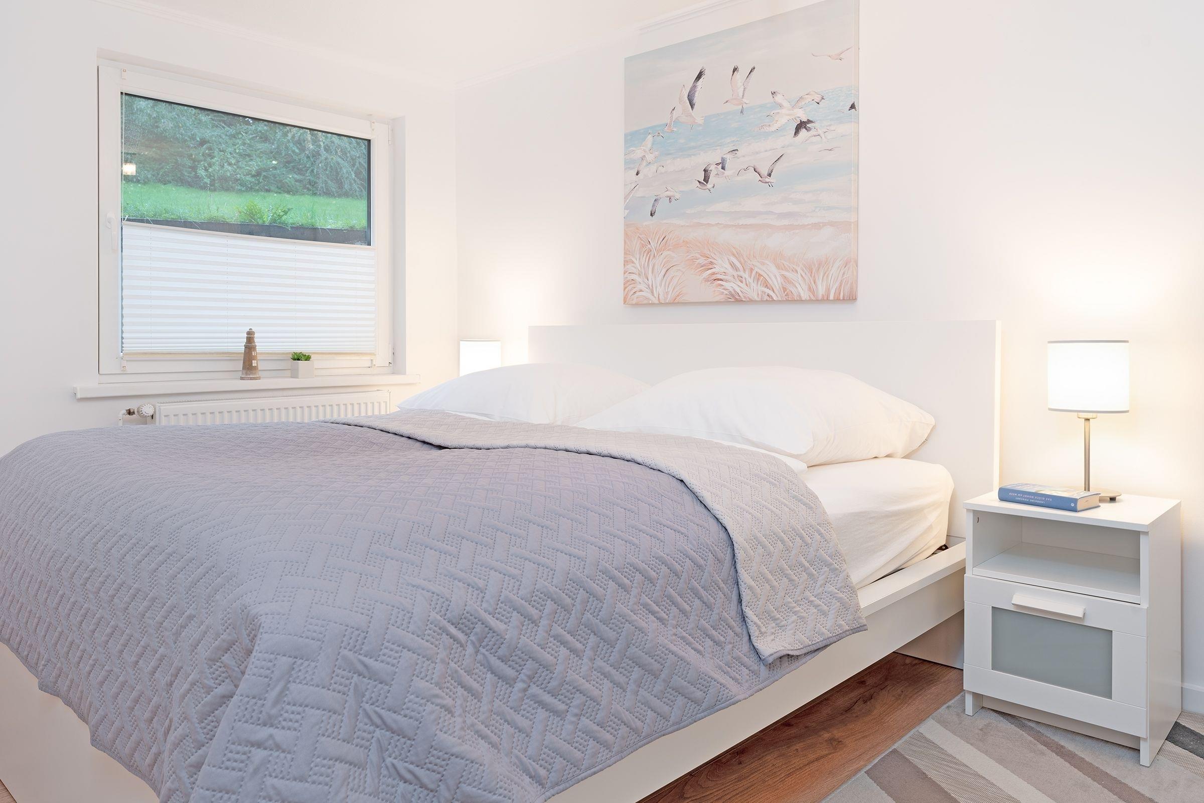 Die Küche ist gut ausgestattet und bietet alles, was Sie für die Zubereitung köstlicher Mahlzeiten benötigen. Im separaten Schlafzimmer mit komfortablem Doppelbett (2x 90x200 cm) lässt es sich herrlich relaxen und träumen. Auch hier gibt es ausreichend Platz für ein Babybett, falls Sie mit einem Kleinkind anreisen. Für Ihre Privatsphäre und ein angenehmes Schlafklima sorgen Sichtschutz-Plissees an den Fenstern. Das Badezimmer mit einer bodengleichen Dusche und einem beheizbaren Handtuchhalter sorgt für einen guten Start in den neuen Urlaubstag.