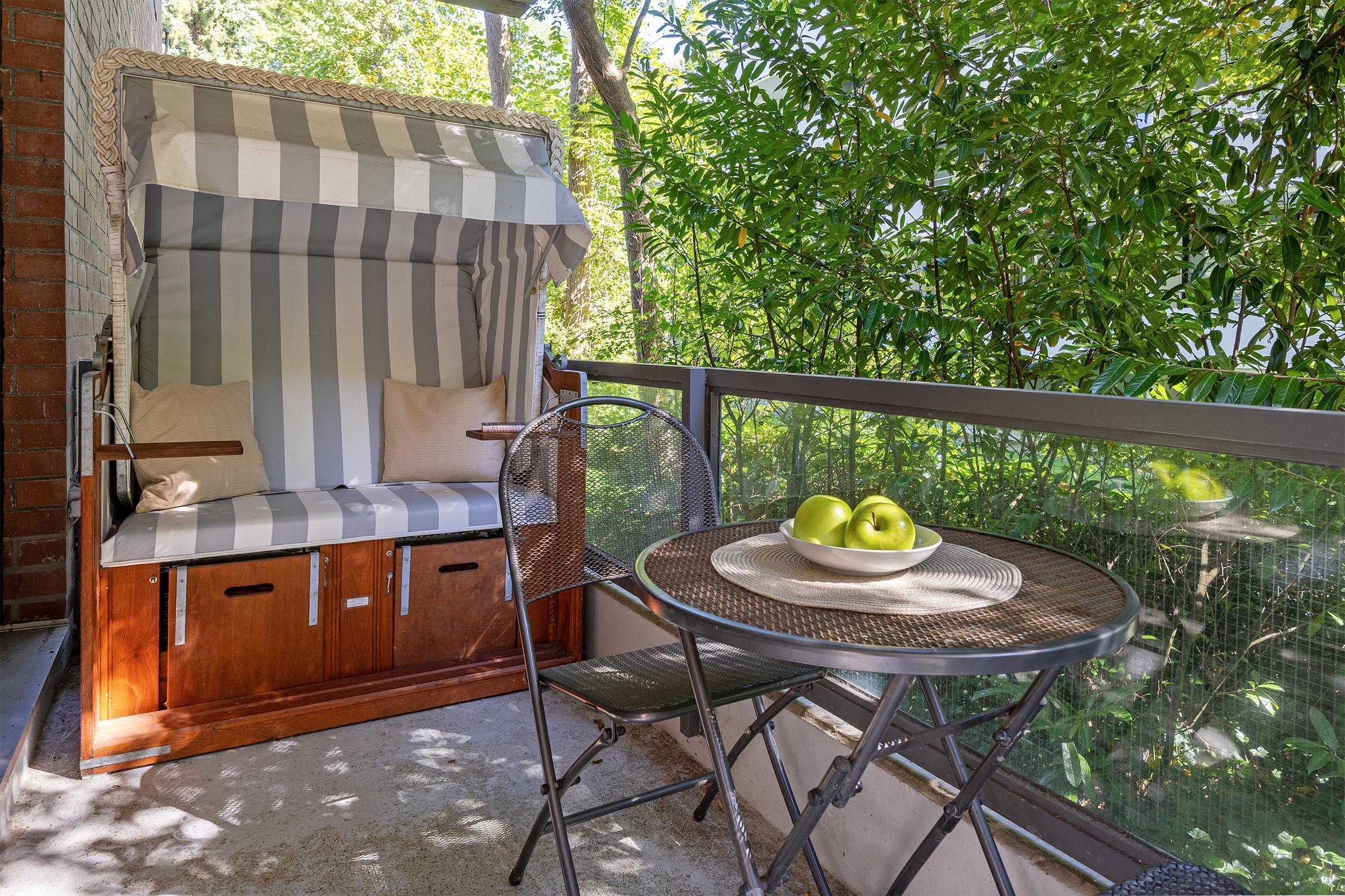 Strandnahe 2-Zimmer-Ferienwohnung in Timmendorfer Strand mit 56 m² Wohnfläche im Erdgeschoss mit Balkon für bis zu 4 Personen.