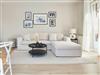 Im hellen Wohnzimmer schaffen ein großes, cremefarbenes Sofa und ein Smart-TV eine Atmosphäre von hohem Komfort und Behaglichkeit.