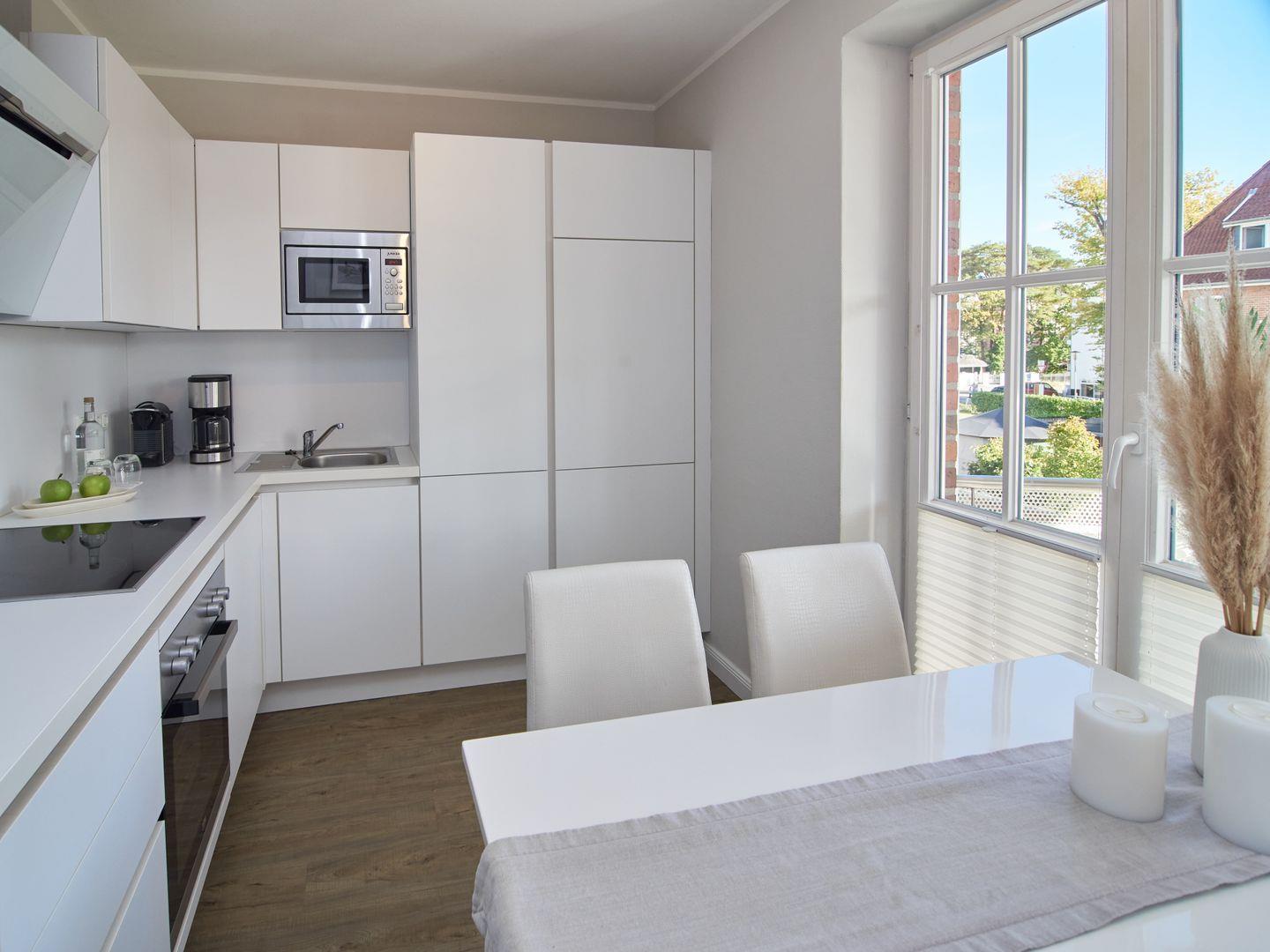 Das schöne Wohnzimmer lädt mit dem hellen Sofa, Sessel und der liebevollen Dekoration zum Verweilen ein. Aber auch an Smart-TV, WLAN und eine Musikanlage wurde gedacht. Die separate, neue Küche verfügt über eine zeitgemäße Ausstattung, eine gemütliche Essgruppe und ein tolles Design. Sie lädt zum Kochen und Schlemmen ein. Der großzügige Balkon ebenfalls rückseitig gelegen. Hier lädt die Sitzgruppe aus Rattan zum Schlemmen und Entspannen ein. Das ruhige Hauptschlafzimmer beinhaltet ein großes Boxspringbett mit Überlänge, einen zweiten TV und ein Ambiente, das zum Träumen einlädt. Das kleine, zweite Schlafzimmer ist mit zwei separaten Einzelbetten und in hellen Tönen ebenfalls liebevoll gestaltet. Das Bad mit Fenster verfügt über eine neue, große Dusche in einem schönen Ambiente.