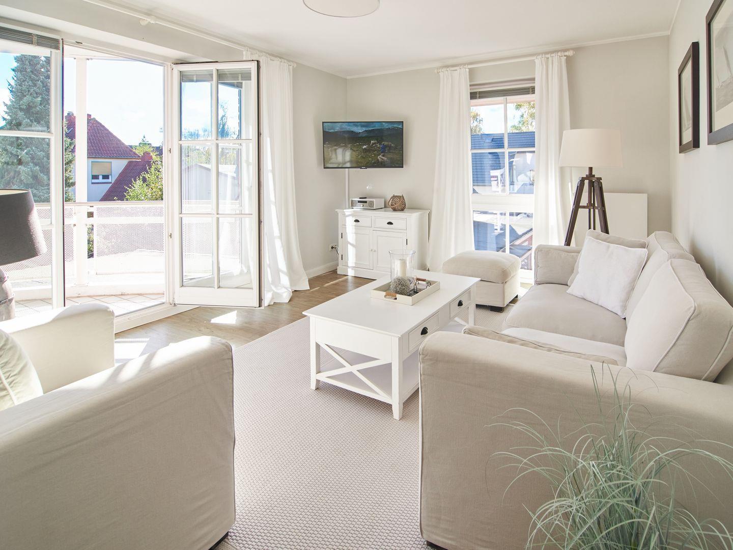Das Apartment Sonneninsel lädt zum Wohlfühlen ein. Es liegt im ersten Stock, verfügt über zwei Schlafzimmer und ist liebevoll mit hochwertigem Interieur im modernen Beach-House-Style ausgestattet.