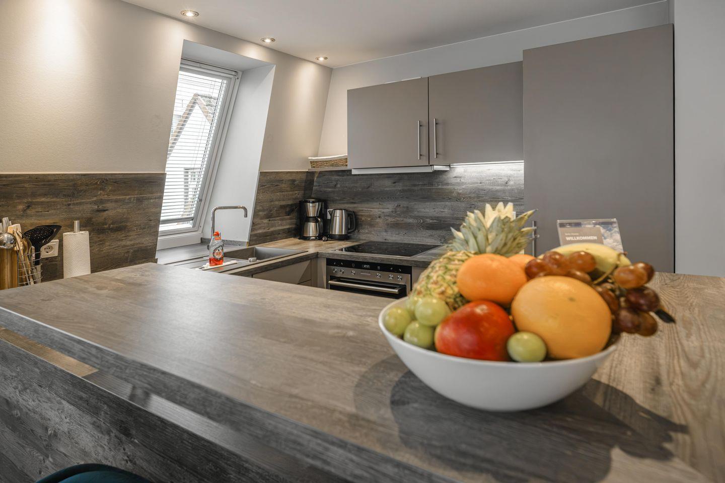 Der offene Wohnbereich bietet mit seinem modernen Küchentresen in Kombination mit dem angrenzenden Wohnzimmer und Essbereich viele Gelegenheiten für eine wundervolle gemeinsame Zeit. An schönen Sommerabenden lockt der großzügig geschnittene Südbalkon, auf dem man auch zu fortgeschrittener Tageszeit noch die wärmende Abendsonne genießen kann.