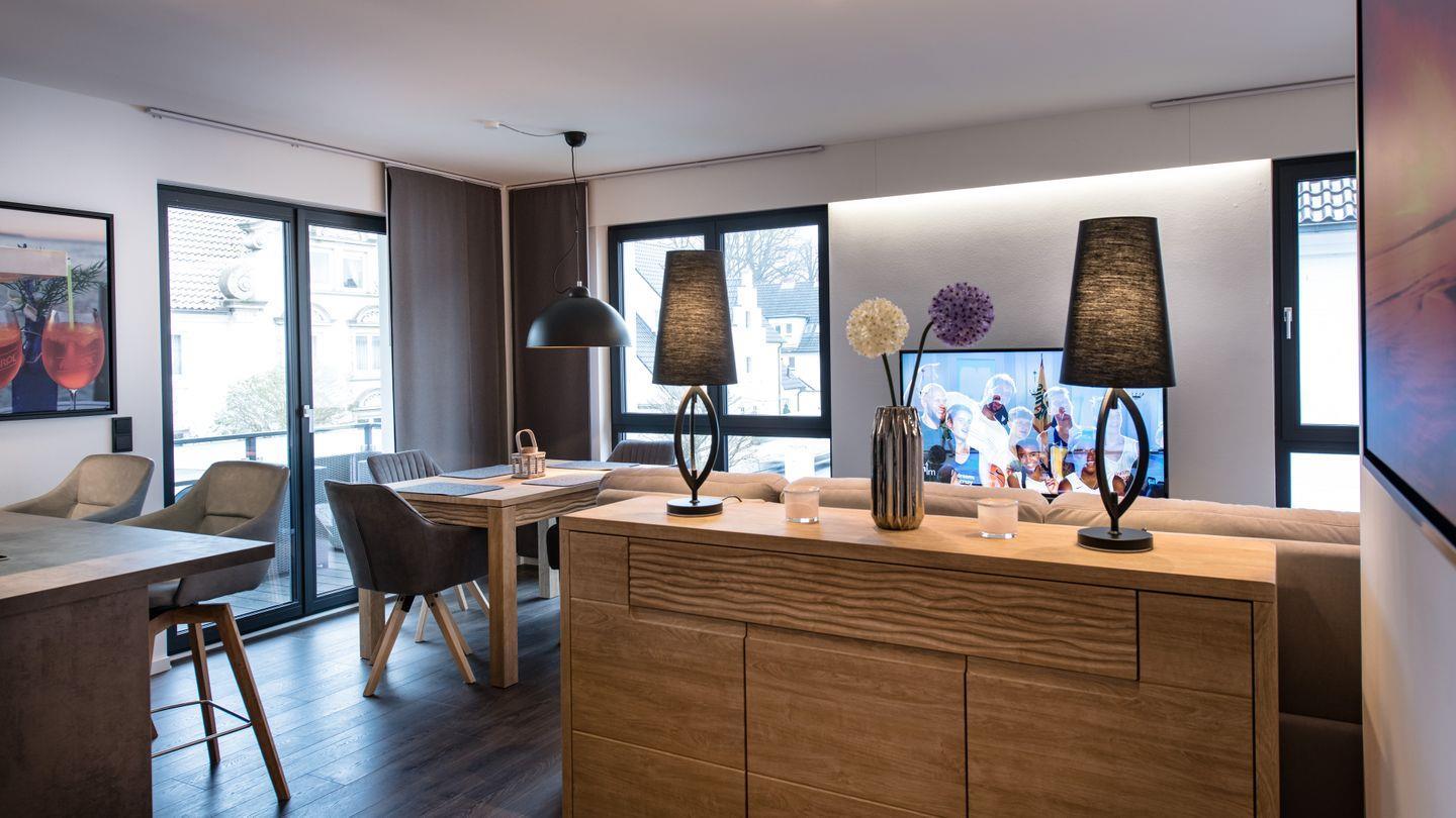 Im ersten Obergeschoss befindet sich die Ferienwohnung „Herz“. Sie ist 65 qm groß, für bis zu vier Personen konzipiert und zeichnet sich durch ihre helle skandinavisch angehauchte Gestaltung, den Echtholz-Parkettboden mit integrierter Fußbodenheizung und ihre ebenso gemütliche wie stilvolle Einrichtung aus. Mittelpunkt der Wohnungen ist eine offene Architektur, die Küche, Wohn- und Essbereich miteinander verbindet. Das Highlight ist eine Infrarotkabine für das perfekte Finish eines grandiosen Tages.