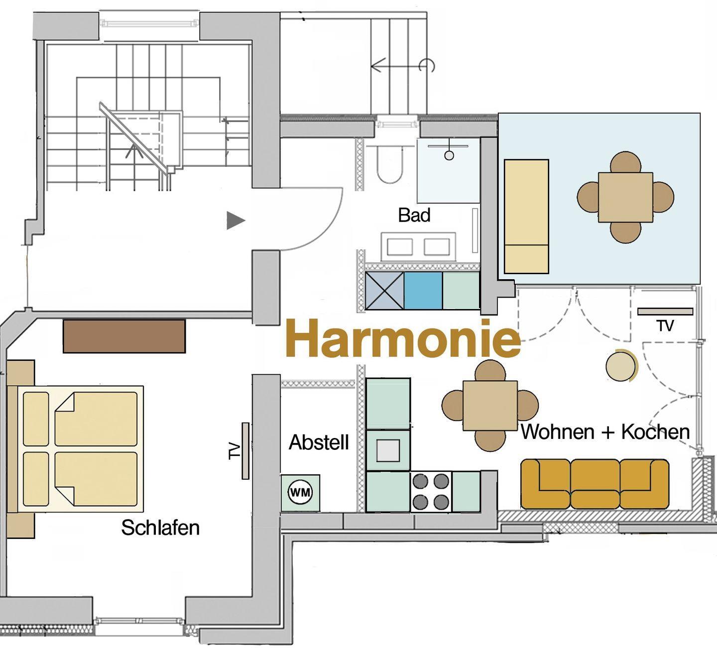 Gönnen Sie sich eine Auszeit und verbingen Sie Ihren Urlaub in unserer Ferienwohnung „Harmonie“. Genießen Sie ein paar ruhige Stunden auf dem 9 qm großen Balkon und tanken Sie einmal richtig Sonne. Am Abend können Sie sich dann, bei einem Glas Wein, an den atemberaubenden Ausblick auf ganz Timmendorf erfreuen. Auch diese Wohnung überzeugt mit Ihrer luxuriösen und ästhetischen Einrichtung. Die umfassende Ausstattung lässt keine Wünsche offen.