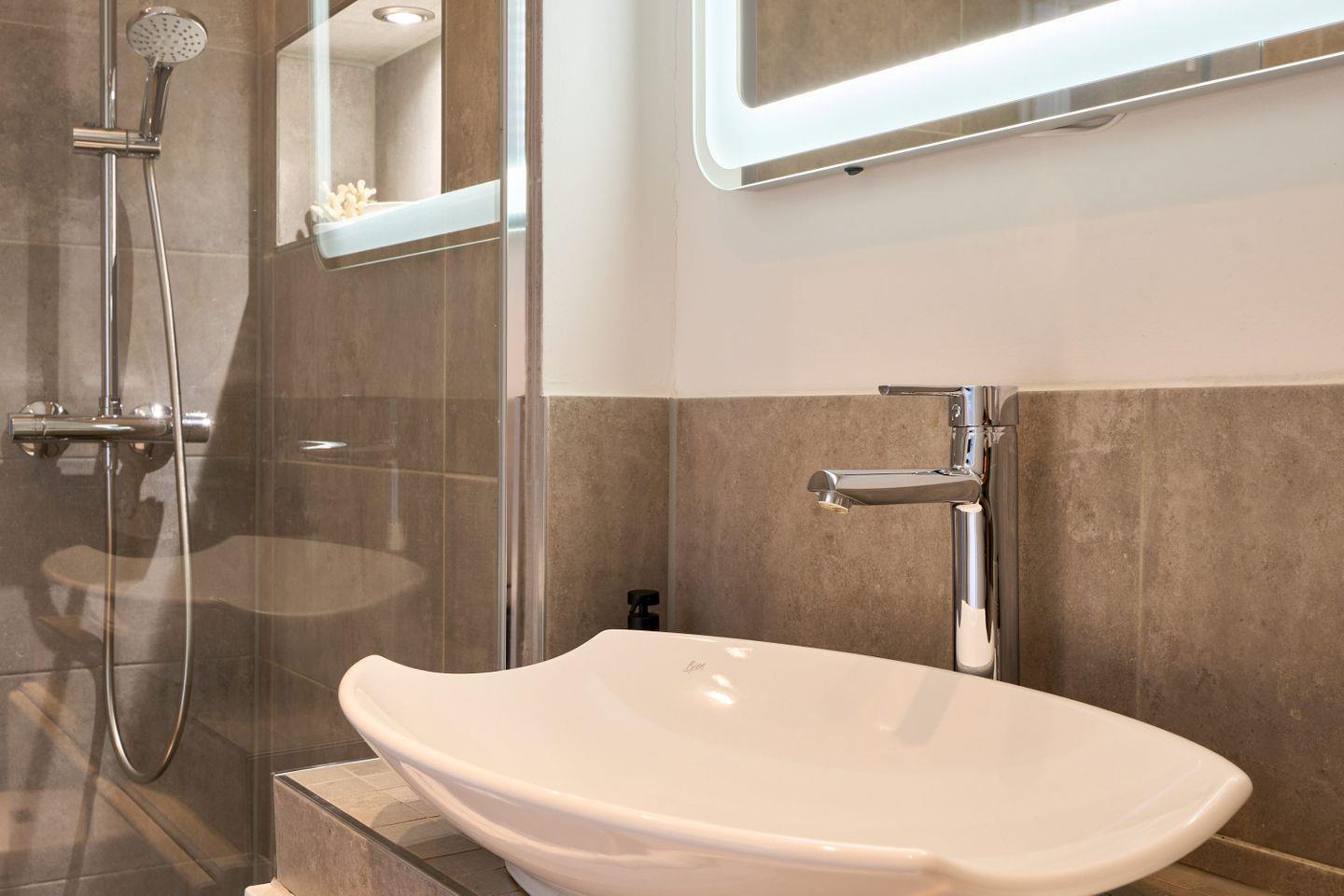 Das moderne Duschbad bietet nicht nur Funktionalität, sondern auch einen Hauch von Luxus für Ihren Aufenthalt. Die geschmackvolle Einrichtung und die durchdachte Raumaufteilung tragen dazu bei, dass Sie sich in dieser "Auszeit" vollkommen entspannen können.