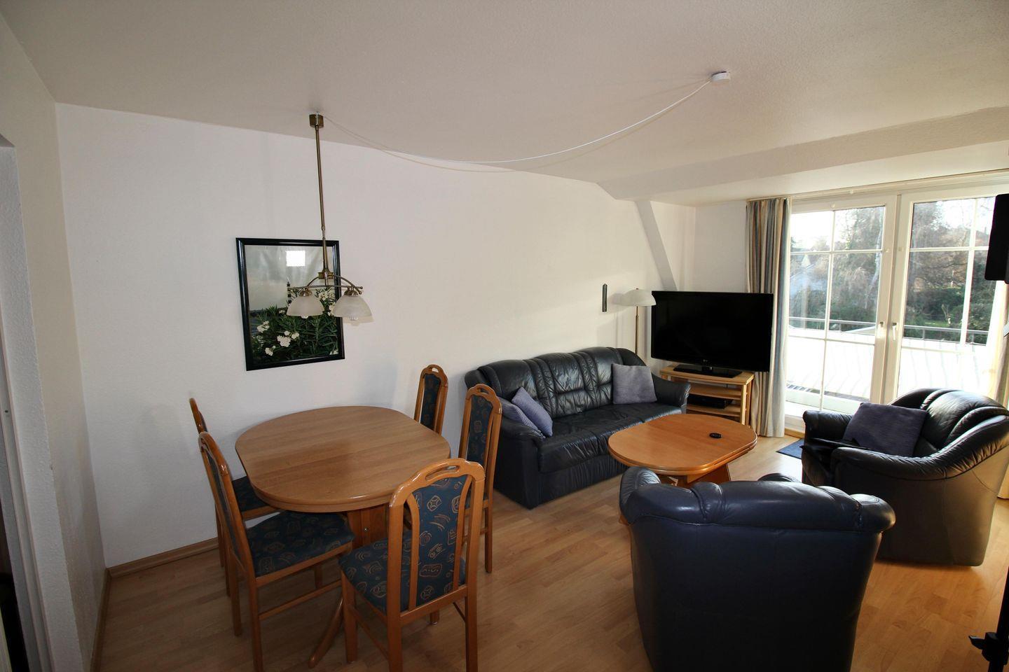 Das Apartment befindet sich im zweiten Stock eines attraktiven Mehrfamilienhauses und ist ideal für bis zu vier Gäste auf 48 Quadratmetern ausgestattet. Das lichtdurchflutete Wohn- und Esszimmer bietet neben einer bequemen Ledercouch, die sich in ein Schlafsofa verwandeln lässt, auch einen Flachbild-TV, eine Stereoanlage und einen Esstisch für sechs Personen. Kostenloses WLAN ist selbstverständlich inklusive.
