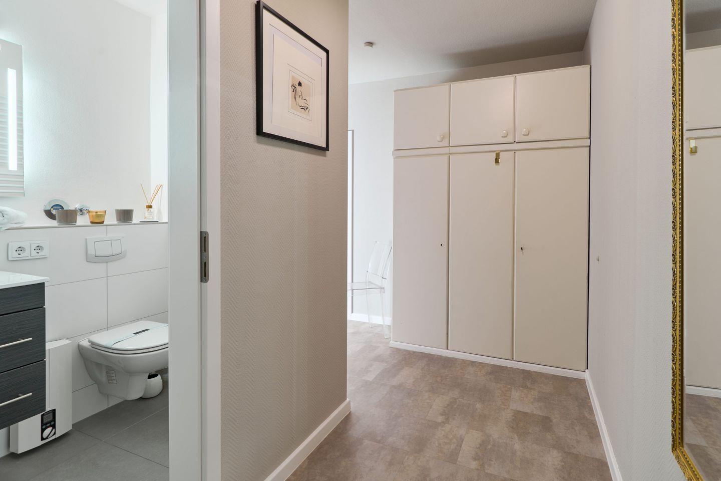Die großzügig geschnittenen, lichtdurchfluteten 2 Zimmer sind stilvoll eingerichtet und schaffen eine gemütliche Atmosphäre, in der Sie sich sofort wohlfühlen werden. Die moderne, neue Küche ist mit hochwertigen Geräten ausgestattet und lädt dazu ein, nach einem entspannten Strandtag gemeinsam zu kochen. Das neue, elegante Badezimmer überzeugt mit einer großzügigen Walk-in-Dusche, die Ihnen ein Gefühl von Wellness bietet.