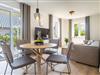 Der offene Wohnbereich ist großzügig gestaltet und bietet eine bequeme Couchlandschaft sowie einen großen Smart-TV für gemütliche Abende. Große Fenster sorgen für viel Tageslicht und eine angenehme Atmosphäre. Die offene Küche ist voll ausgestattet – ideal für gesellige Kochabende. Auf der nordostseitigen Terrasse startest du entspannt in den Tag oder lässt ihn entspannt ausklingen.