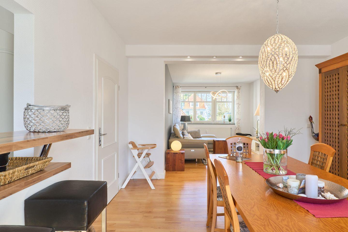 Das Herzstück der Wohnung ist der offen gestaltete Wohn- und Essbereich. Hier trifft modernes Design auf wohnliche Gemütlichkeit. Der helle Raum verbindet Kochen, Essen und Entspannen auf harmonische Weise – perfekt für gemeinsame Urlaubsmomente. Im Wohnbereich stehen Ihnen ein Smart-TV, ein BluRay-Player sowie ein Radio mit Bluetooth-Funktion zur Verfügung. Gesellschaftsspiele für verschiedene Altersgruppen sorgen für Unterhaltung bei jedem Wetter. Die offene Küche ist voll ausgestattet mit einer Filterkaffeemaschine, einer Nespresso-Kafffeemaschine, einer Special.T-Teemaschine (inkl. zwei Begrüßungstabs), einem Geschirrspüler, einer Mikrowelle sowie einer Kühl-/Gefrierkombination. Auch ein Bügeleisen mit Bügelbrett ist vorhanden.