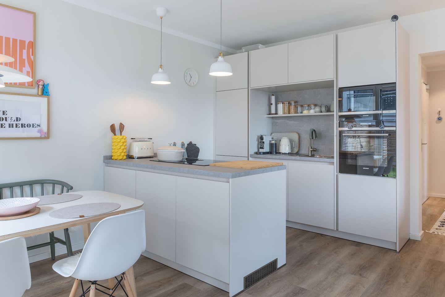 Die offene Gestaltung der Räume sorgt für ein freundliches Ambiente, das zum Verweilen einlädt. Zwei Schlafzimmer bieten viel Platz für Familien, Paare oder Freunde. Das komfortable Sofa lädt zum Entspannen ein, und die voll ausgestattete Küche mit hochwertigen SMEG-Geräten macht das Kochen zum Vergnügen. Essmöglichkeiten gibt es sowohl drinnen im großzügigen Wohnbereich als auch draußen im privaten Garten.