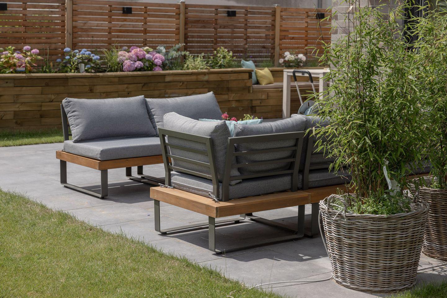 Der Garten mit Lounge-Möbeln ist ein persönlicher Rückzugsort zum Entspannen und Abschalten nach einem Strandtag oder Ausflug.