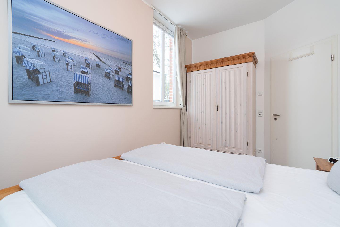 Dieses freundliche Erdgeschoss-Appartement im Hinterhaus der Strandallee 22 bietet Euch auf ca. 99 m² ein einladendes Zuhause für Eure Zeit an der Ostsee. Zwei separate Schlafzimmer, ein großzügiger Wohn- und Essbereich sowie ein kleiner Garten mit Terrasse und eigenem Strandkorb schaffen den perfekten Rahmen für entspannte Urlaubstage. Bodentiefe Fenster, Fußbodenheizung und eine stimmige Ausstattung sorgen für ein angenehmes Wohngefühl. WLAN (kostenfrei, bei Störungen kein Anspruch auf Erstattung oder Ersatz), zwei eigene Parkplätze sowie eine Waschmaschine und ein Trockner im Gemeinschaftskeller gehören ebenfalls dazu – ideal für Familien, Paare oder kleine Reisegruppen.