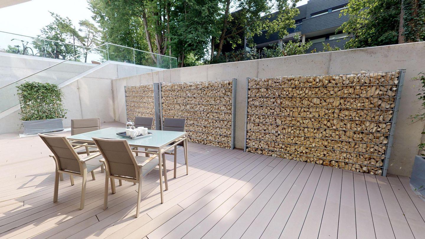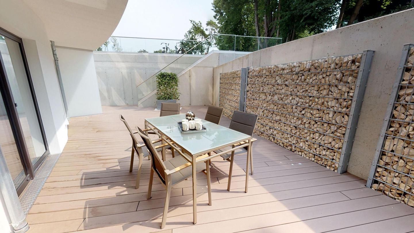 In der oberen Ebene erstrecken sich der großzügige, offene Wohn- und Essbereich sowie die hochwertig ausgestattete Küchenzeile. Abgerundet wird die obere Ebene durch den großen Balkon. Zur Wohnung gehört ein Tiefgaragenstellplatz.