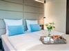 Die traumhafte Suite verfügt über zwei separate Schlafzimmer, jeweils mit einem Boxspring-Doppelbett ausgestattet, beide mit Zugang zum umlaufenden Balkon. Weiterhin gibt es einen lichtdurchfluteten Wohnbereich mit einer riesigen Fensterfront, der an die offene, voll ausgestattete Küchenzeile mit Essbereich angrenzt. Das luxuriöse Badezimmer mit Dusche rundet die Wohnung ab.