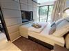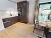 Das Apartment verfügt über eine voll ausgestattete Küchenecke mit einem Essbereich im Wohnzimmer. Der offene Wohn- und Essbereich wird durch ein Sofa und einen bequemen Sessel ergänzt. Im separaten Schlafzimmer befindet sich ein Boxspring-Doppelbett, das durch Lamellen-Schiebetüren abgetrennt werden kann. Zusätzlich gibt es ein luxuriöses Badezimmer mit Dusche.