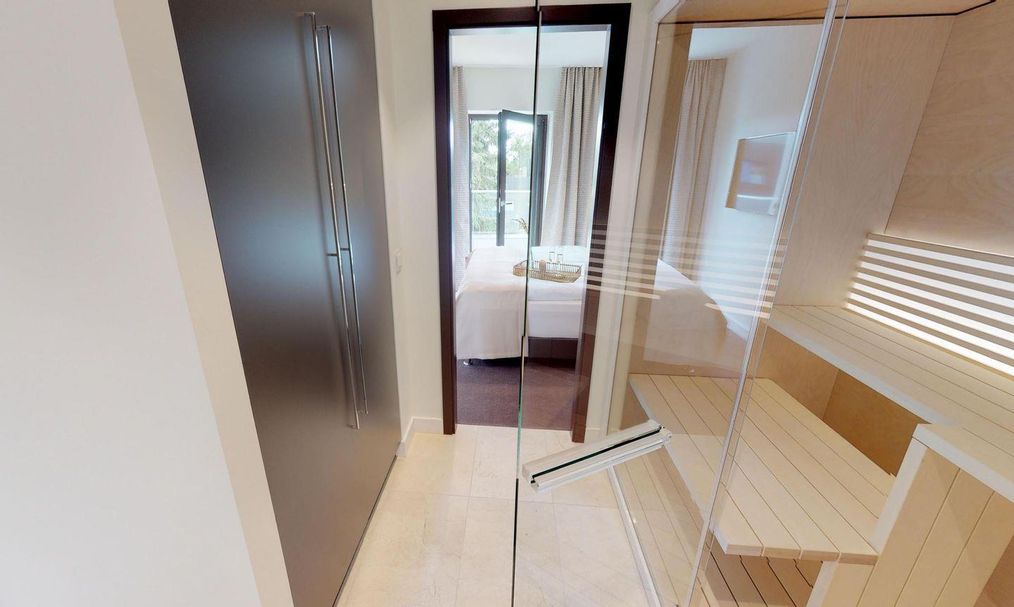 Highlights der Suite sind die eigene Sauna (2,37m x 1,19m) sowie die möblierten Balkone mit einem Strandkorb, die entspannte Stunden an der frischen Meeresluft ermöglichen! Zur Wohnung gehört ein Tiefgaragenstellplatz.