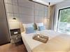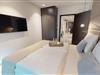 Die traumhafte Suite verfügt über zwei separate Schlafzimmer, jeweils mit einem Boxspring-Doppelbett ausgestattet, wobei eines Zugang zum Balkon bietet. Weiterhin gibt es einen lichtdurchfluteten Wohnbereich mit einer riesigen Fensterfront, der an die offene, voll ausgestattete Küchenzeile mit Essbereich angrenzt. Das Sofa im Wohnbereich dient als Schlafmöglichkeit für zwei Personen. Das luxuriöse Badezimmer mit Dusche rundet die Wohnung ab.