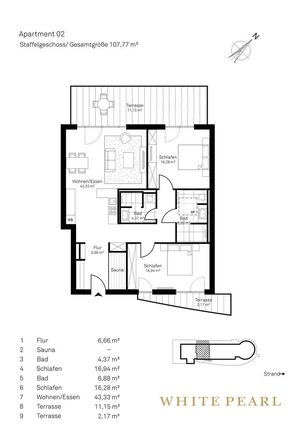 Strandlage - Großes Luxusapartment 4.02 mit eigener Sauna für 5 Personen
