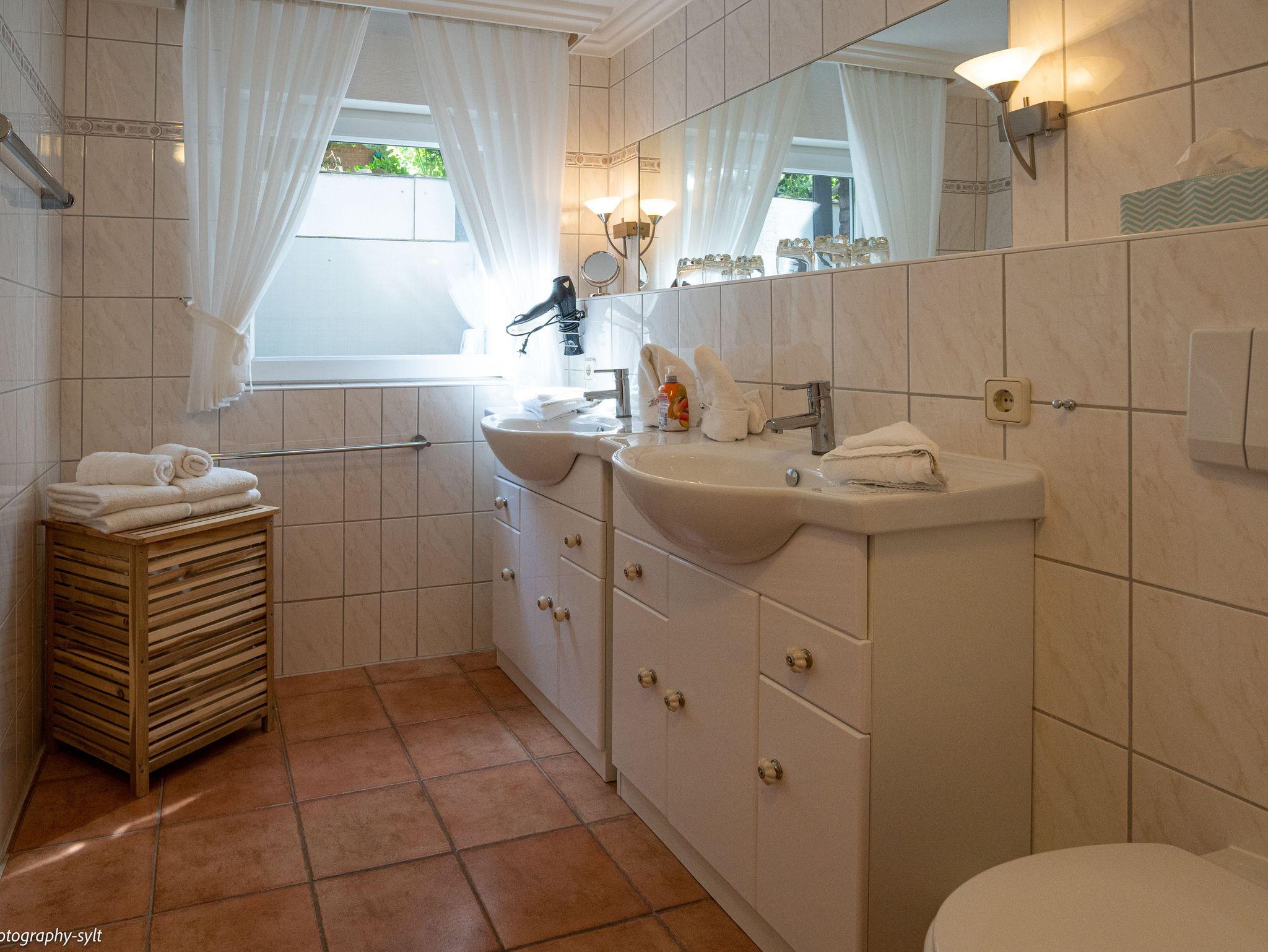 Direkt dazwischen befindet sich ein helles Bad mit zwei