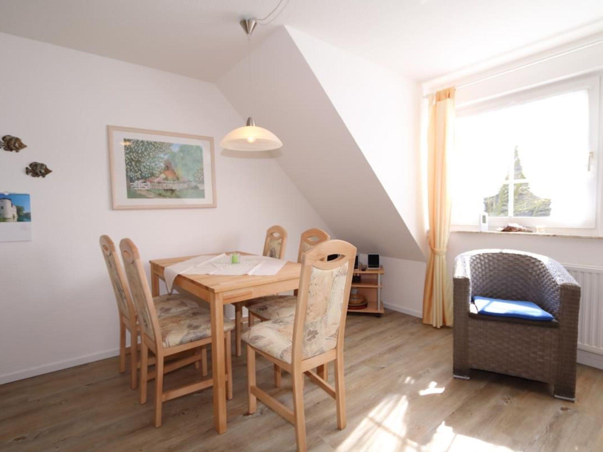 Ein gemütlicher Einrichtungsstiel in warmen Farben erwartet Sie. Wohnzimmer mit bequemer Sitzgarnitur und Esstisch. Flachbildschirm und Radio. Kostenloses W'Lan