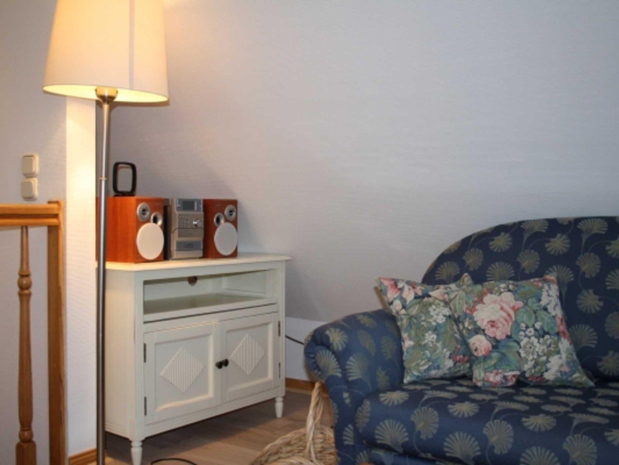 Sehr schöne Ferienwohnung im Dachgeschoss. Das helle und gemütliche Wohnzimmer lädt zum Verweilen ein. Die moderne Küchenzeile bietet alles, was es zum Kochen braucht und das schicke Duschbad überzeugt mit seinem besonderen Look. Eine Unterkunft, in der man sich einfach nur wohlfühlen kann. Zur vertiefenden Entspannung steht für Sie eine Sauna bereit. Auch Ihre vierbeinigen Freunde sind herzlich willkommen. Das Dachgeschoss, in dem sich das Schlafzimmer befindet, erreichen sie über eine Wendeltreppe.