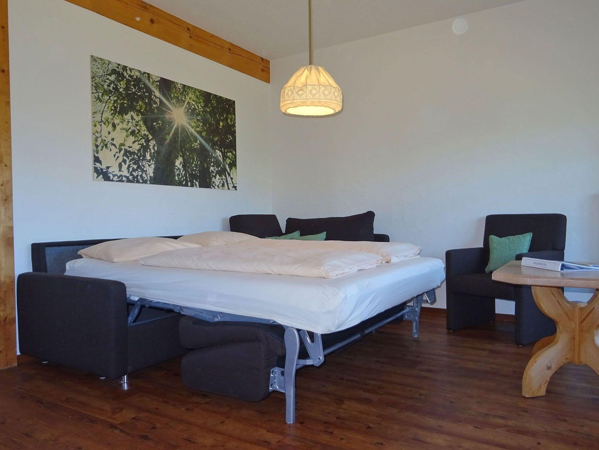 Frisch renovierte Ferienwohnung im Erdgeschoss im Schwarzwaldhaus mit Balkon. Auf 55qm haben Sie eine Eingangsdiele mit Zugang zum geräumigen Wohnesszimmer mit Küchenzeile und Couchecke. Zugang zum separaten Zirben-Schlafzimmer mit Doppelbett und Blick zum Hochfirst. Zugang zum Badezimmer mit Außenfenster, begehbarer Dusche und WC. Der Boden ist mit einem hochwertigen PVC Designerboden in Eichenoptik verlegt. Die Diele besitzt eine Garderobe in Eiche. Das Wohnesszimmer ist mit Fichtenmöbel im Bauernstill (Vollholz) eingerichtet. Für Person 3-4 steht eine Schlafcouch mit Matratze 160x200 zur Verfügung. Die Maximalbelegung sind 4 Personen.