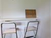 - a living room with 2 box spring sofas (can also be used as a sofa bed), TV and dining area