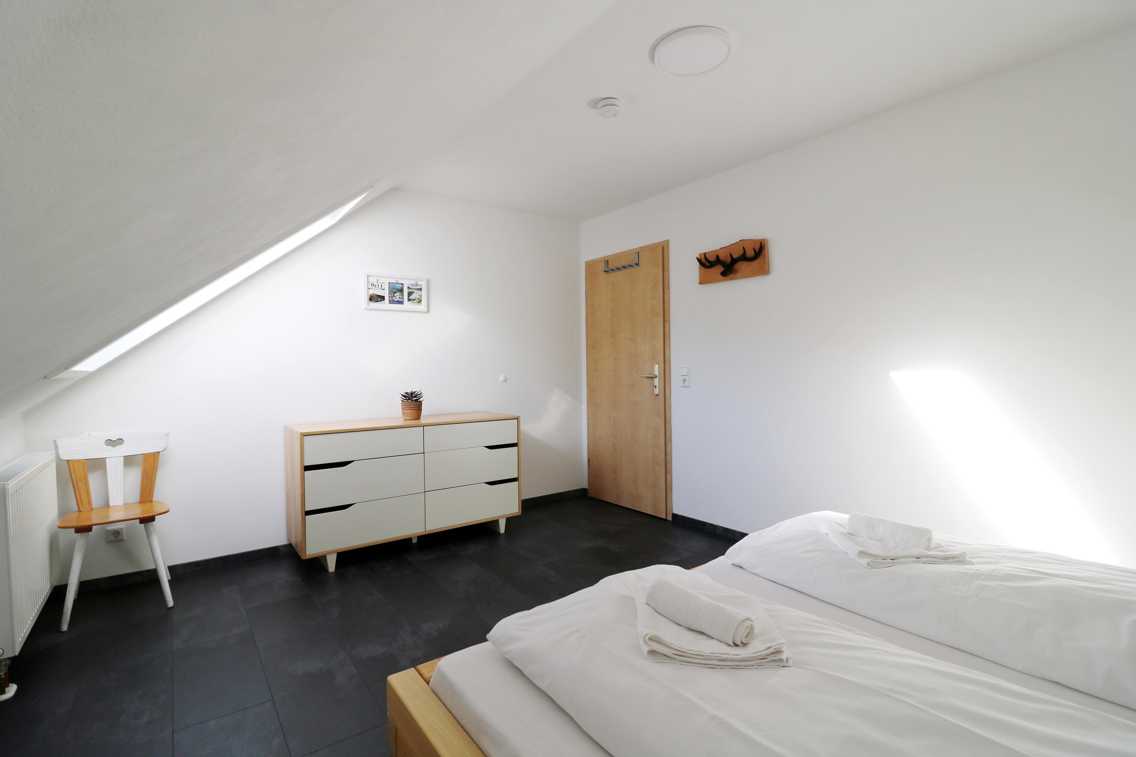 - Ein Schlafzimmer mit einem Doppelbett (180cm x 200cm) und einem Schlafsofa