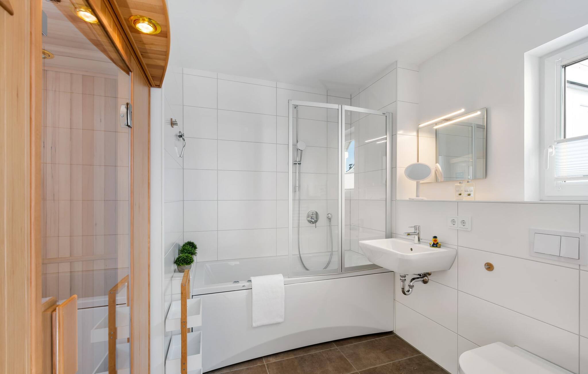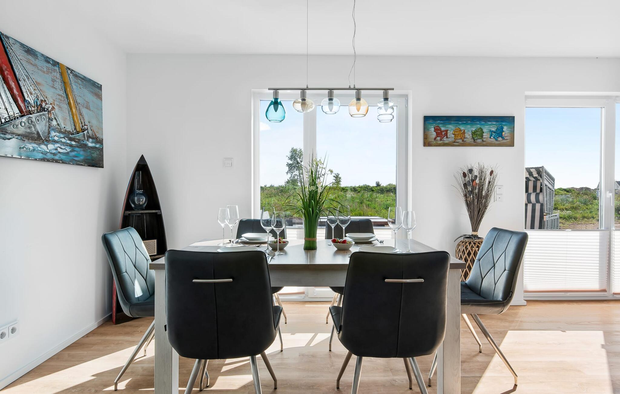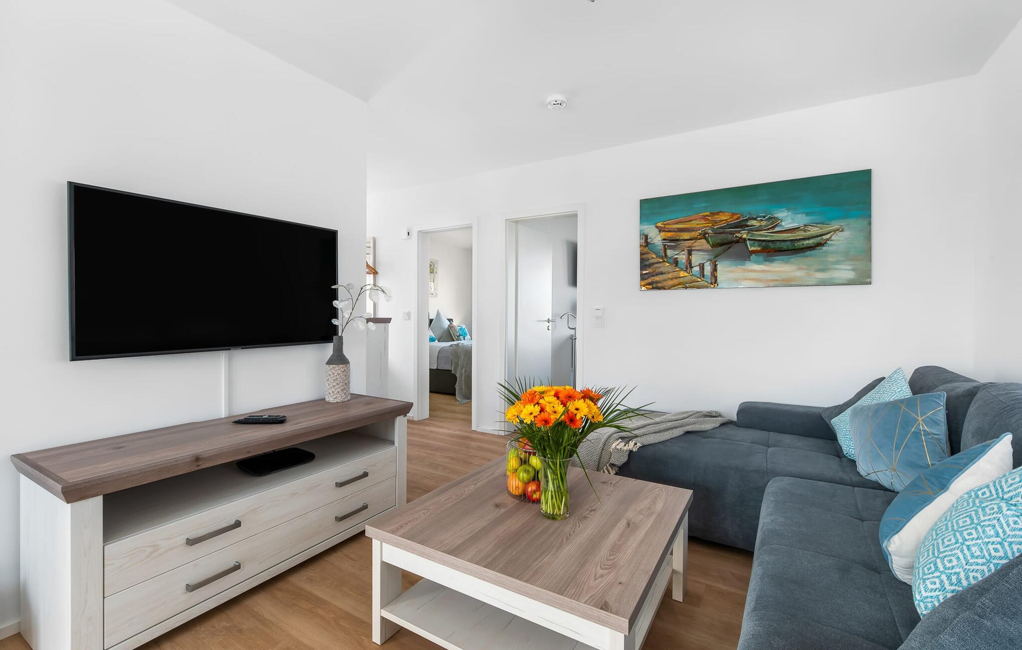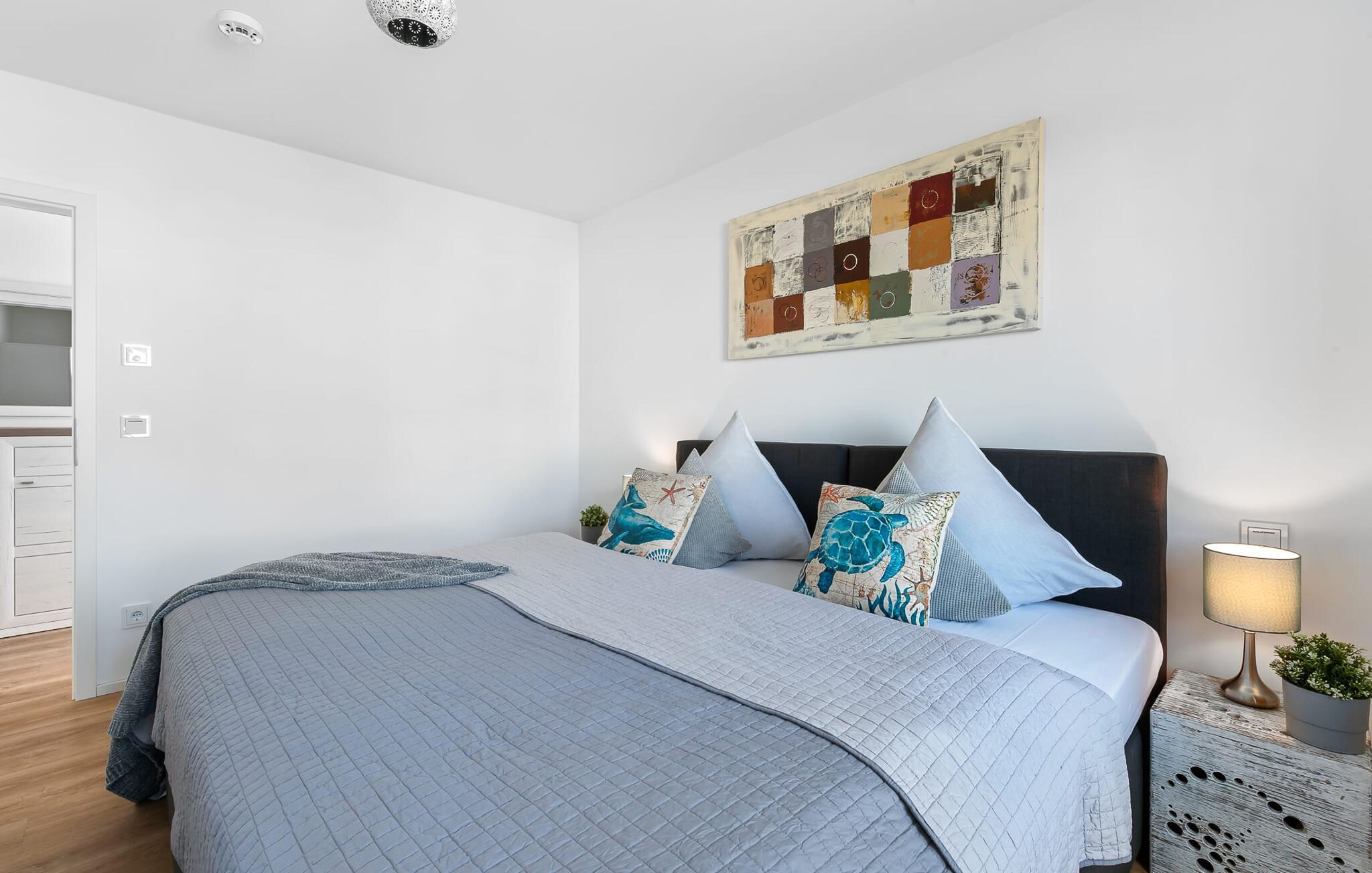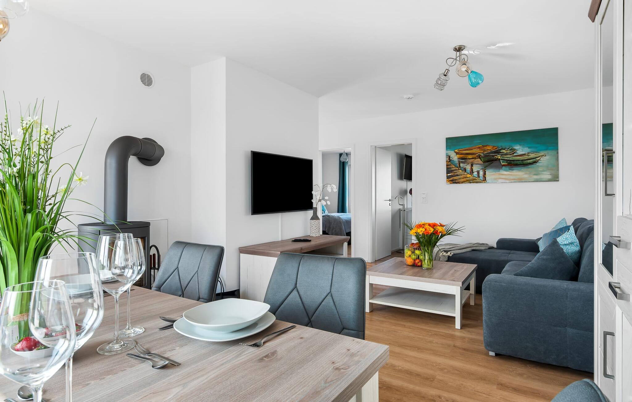 TORTUGA ferielejligheden er noget helt særligt! Der er tale om et fritliggende og lyse sommerhus med to terrasser, der sikrer solskin hele døgnet. Denne ferielejlighed er perfekt til en familieferie ved Østersøen. Den moderne og komfortabelt indrettede ferielejlighed kan rumme 6 personer. Den åbne og rummelige stue/spisestue med sine komfortable møbler, tv og pejs lader intet tilbage at ønske. Og da man i sådan en idyl skal regne med, at der kommer nogen på besøg, kan sofaen med ganske få enkle trin omdannes til en dobbeltseng. At tilberede måltider i det perfekt udstyrede køkken er ikke et obligatorisk program, men ren sjov. At spise sammen på den tilstødende terrasse er endnu mere! I kan samle energi til den kommende dag enten i det komfortable soveværelse med dobbeltseng, tv og terrasse foran, eller i soveværelset med to enkeltsenge. Tilstrækkelig lagerplads er tilvejebragt. Med så meget komfort er det ingen overraskelse, at badeværelset også er noget helt særligt: Ud over et spabad er der også en sauna i form af en infrarød kabine. Det øvrige udstyr tilbyder også alt, hvad mænd og kvinder har brug for til deres daglige velvære. Navnet TORTUGA er ingen tilfældighed: en skildpadde bærer sit hus, hvori den finder beskyttelse og føler sig godt tilpas, på ryggen. Og det er præcis, hvad denne ferielejlighed gør: have det godt 24 timer i døgnet! Stranden kan nås på få minutter til fods, men det er endnu hurtigere på cykel. Her kan børnene slippe dampen, og forældrene kan lade batterierne op. Yderligere sjov for hele familien er den nordiske minigolfbane, som også kun tager et par minutter til fods. Og havnepromenaden med butikker for store og små inviterer til slentretur. Vores foretrukne sted: at ligge på stranden, se skyerne gå forbi og ikke tænke på noget... Bemærk venligst: OstseeResort Olpenitz er meget populært, og der bygges fortsat i parken. Ikke desto mindre kan I se frem til en 5-stjernet standard og et førsteklasses ophold. Byggeaktiviteterne kommer ikke til at forstyrre jer på ferien, og derfor gives der ikke yderligere afslag i prisen.