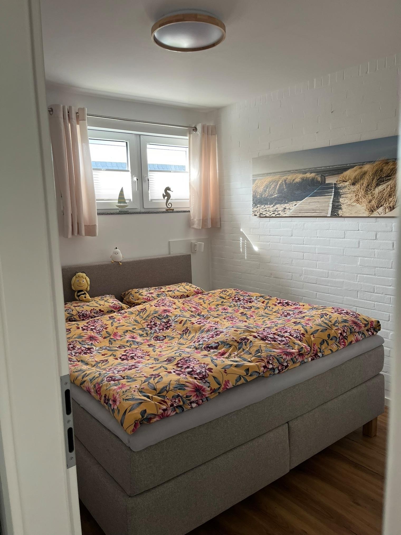 Das eine Schlafzimmer ist mit einem Boxspringbett 180 x 200cm für zwei Personen ausgestattet, im anderen Schlafzimmer befinden sich zwei Einzelbetten 90 x 200cm. Ein Kinderbett kann auf Wunsch zusätzlich aufgestellt werden.
