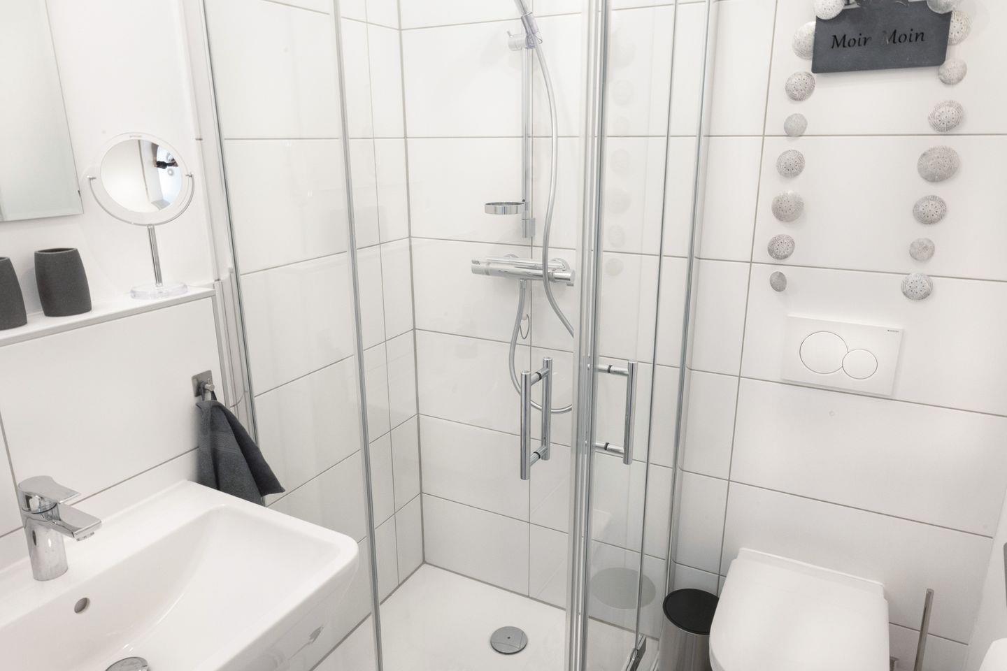 Im Erdgeschoss steht dir ein zweites Duschbad zur Verfügung – modern, praktisch und perfekt für einen Urlaub zu viert.