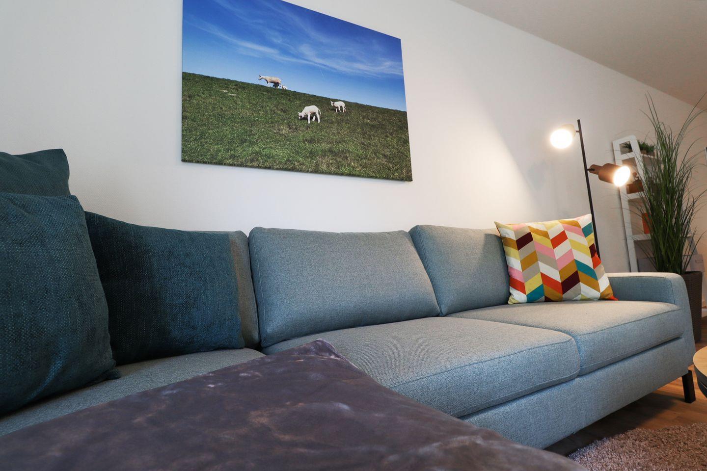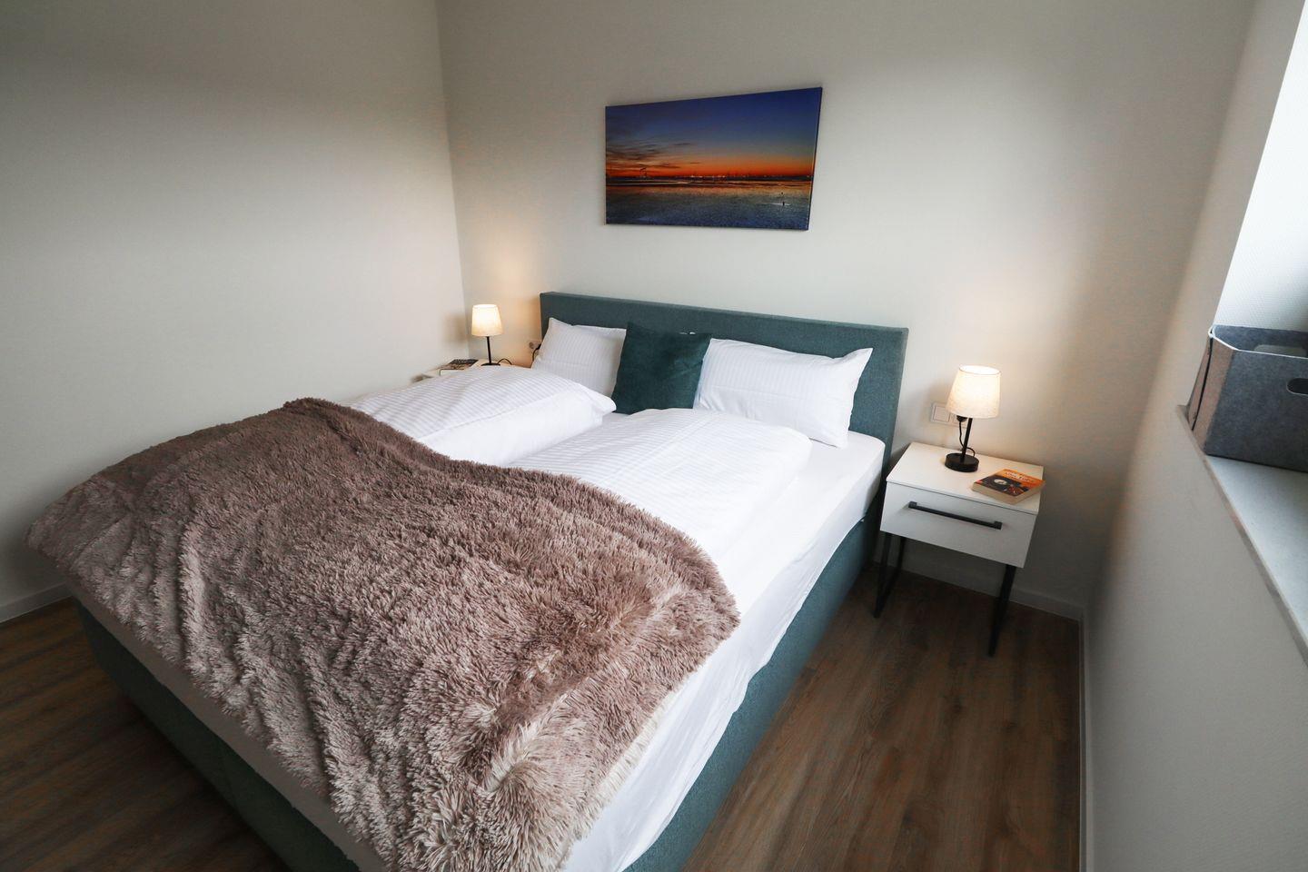 Stilvolle Ferienwohnung im 1. Obergeschoss (mit Fahrstuhl) im neuen Ferienkomplex KÜSTE33 – nur 150 m vom Deich und 400 m vom Friesenstrand entfernt. 79 m², private Sauna, Balkon, Boxspringbett und Schlafsofa, familienfreundliche Ausstattung. Perfekt für Paare, kleine Familien und Gäste mit besonderen Komfortansprüchen.