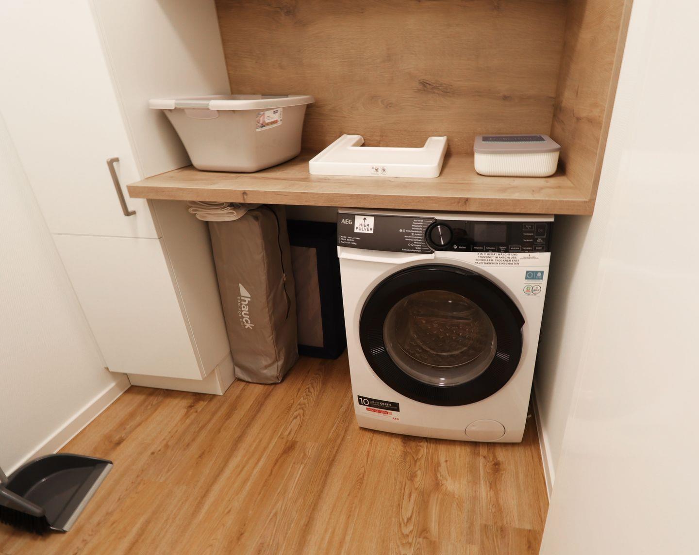 Ein Babybett (ohne Bettzeug) und ein Hochstuhl stehen zur Verfügung. Auch für Kinderwagen, Laufräder & Co. bietet der große Flur genügend Platz.