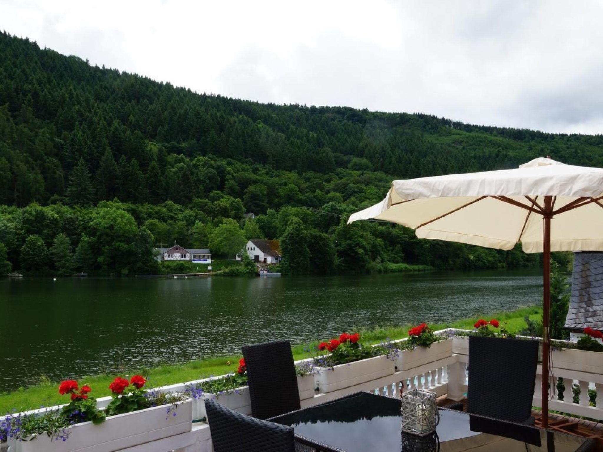 Special feature: Exposed Moselle location, south-facing, 24 sqm terrace facing the Moselle, panoramic windows facing the Moselle, 2 terraces, swimming pool, sauna, electric bicycles, touring bikes, Sky, DSL, 55 inch 3D TV, Playstation3, Deutschlandflat, canoes in the house, private jetty