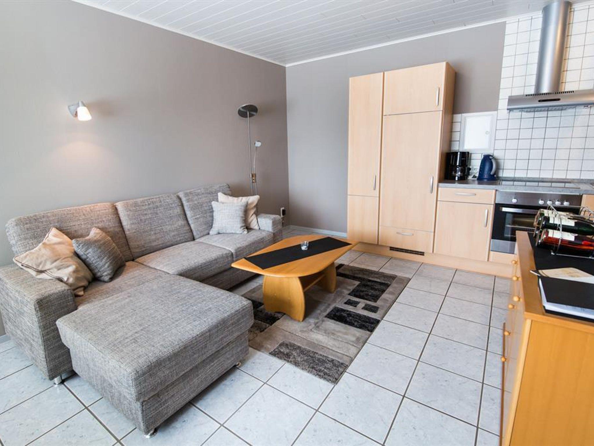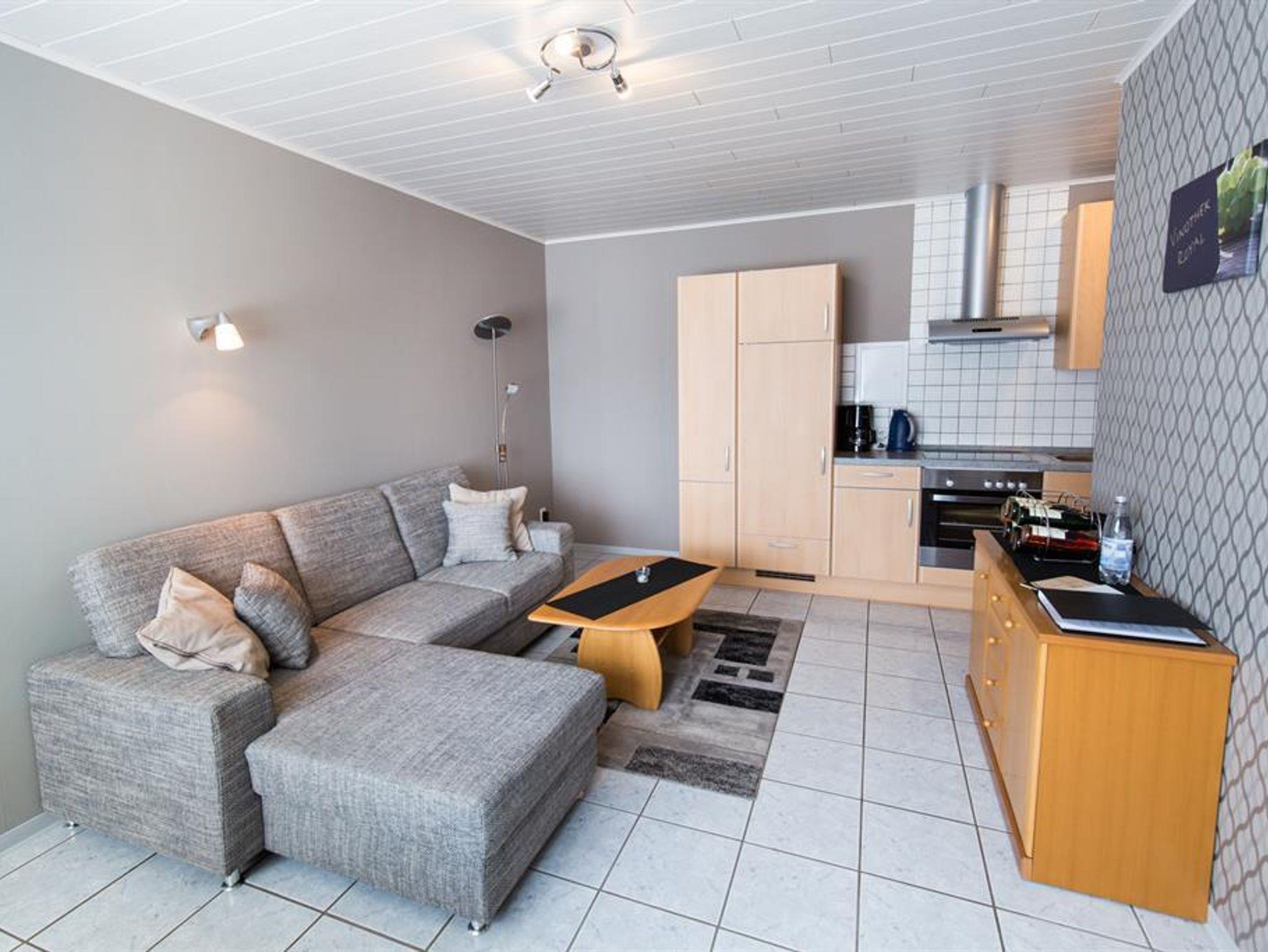 Freundlich und hell eingerichtete 40 m² Wohnung mit Kitchenette offen zum Wohnraum, Telefon, SAT-TV, separater Schlafraum mit Radiowecker, Dusche/WC, Balkon/Terrasse zur Moselseite.